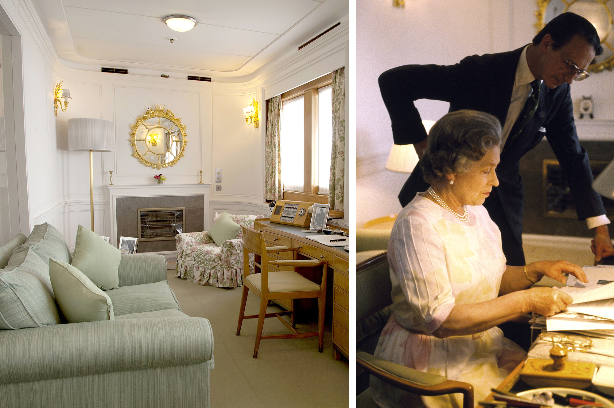 Queen Elizabeth II retires to bed. As is Royal custom, no one goes to bed until the monarch retires. It was sometimes the case that work would continue on urgent documents in her cabin late into the night.