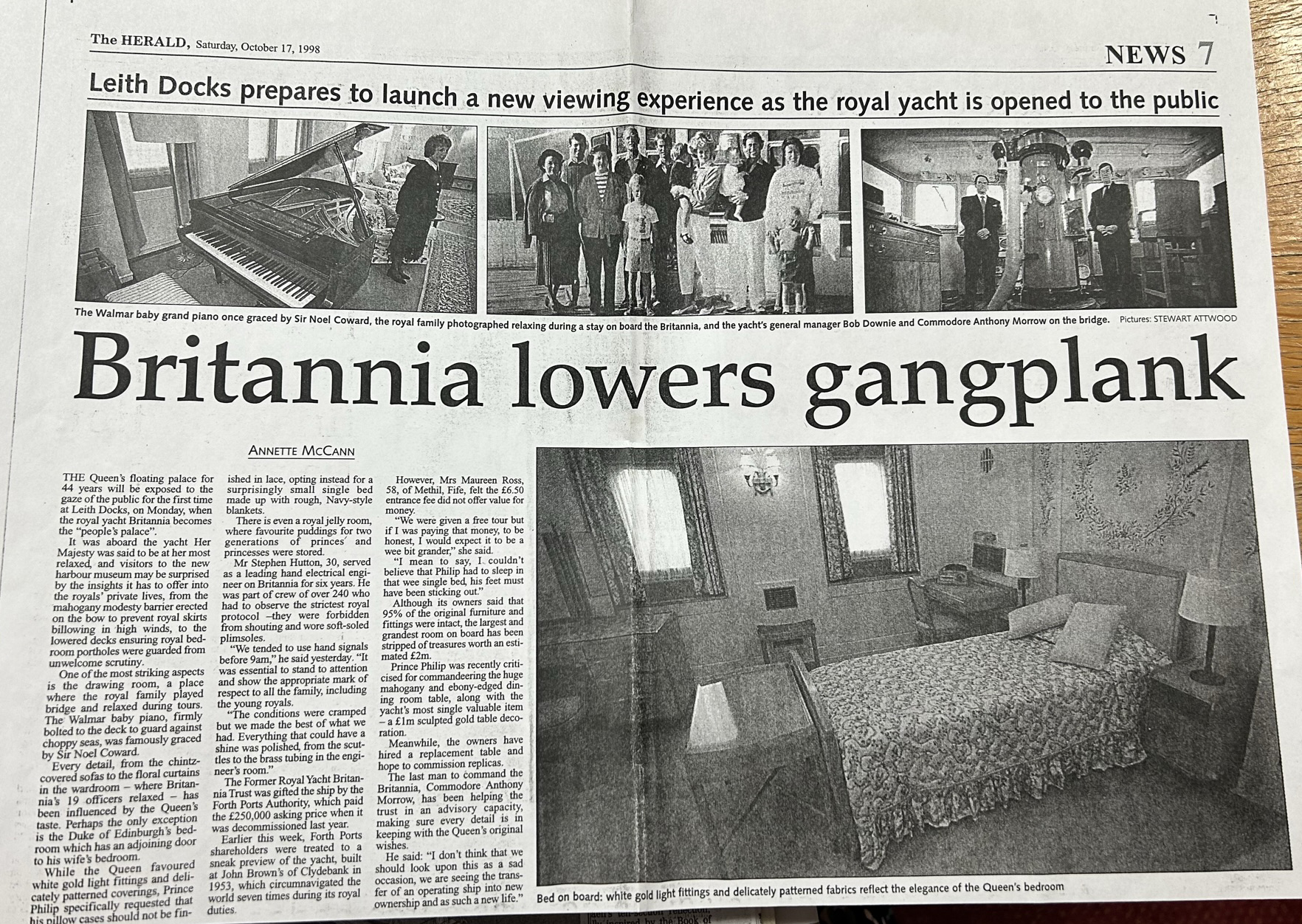 19th October we first opened to visitors. The previous day, I did one-to-one interviews and tours of the ship each hour with journalists from eight UK and Scottish newspapers, so they all had their stories already written. I went home very tired with very sore feet thanks to the teak decks! On the opening day, I had to be there for 6.30am to be interviewed on the two main Breakfast TV shows. It was a mentally and physically exhausting couple of days. After all the visitors left for the day, we celebrated with Champagne and chips!