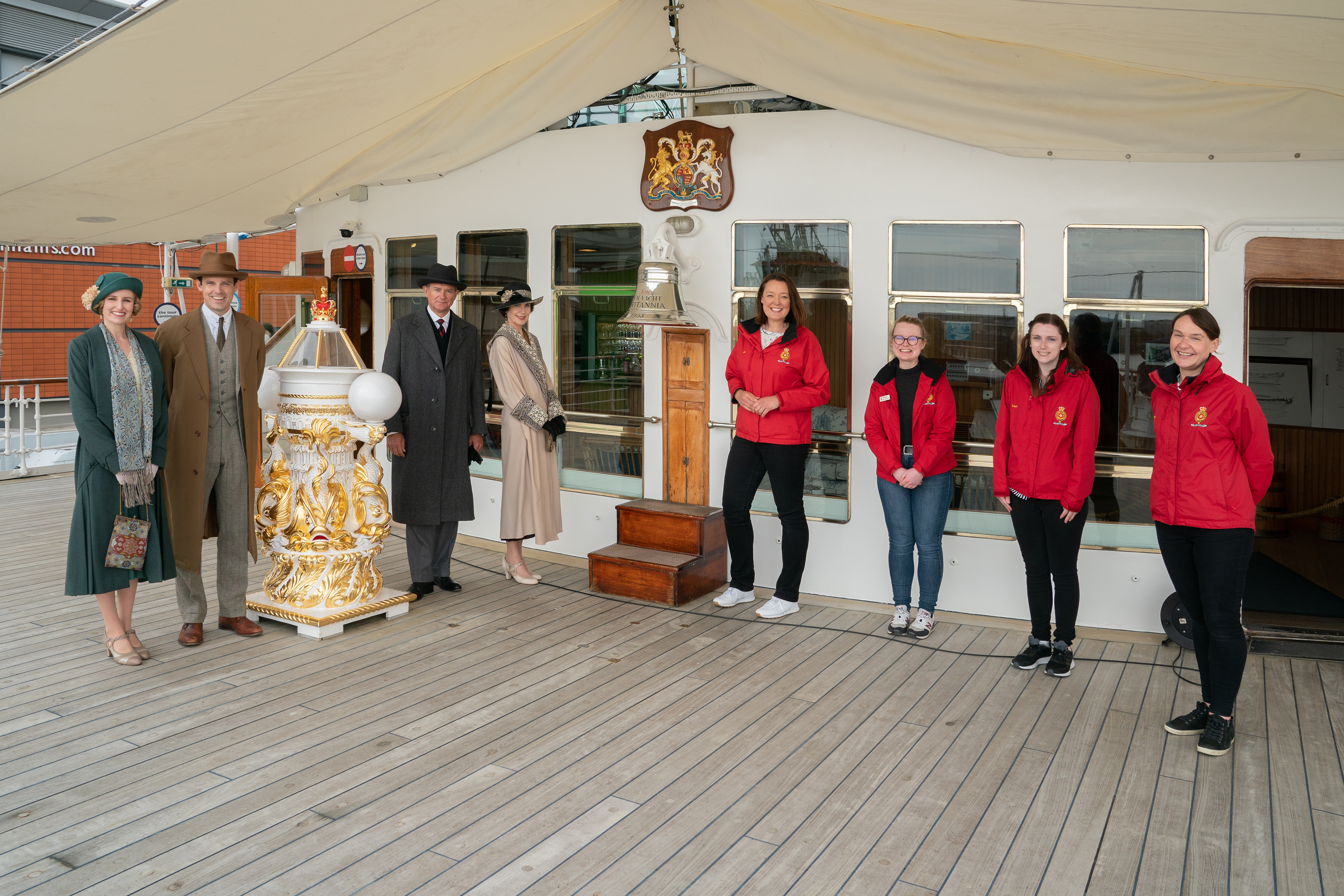 It was really exciting seeing the crew set up the night before, arranging green screens the size of tennis courts, suspending them over Britannia’s decks. It was fascinating to see the costume and hair department with rails of dresses, smart suits as well as hats, gloves and suitcases! The next day, the cast arrived, and it was amazing to see them in our office corridors. I’ll always remember Imelda Staunton CBE stopping by my office to ask us a few questions whilst we were on lunch! Having the Downton cast and crew onboard Britannia was so special.