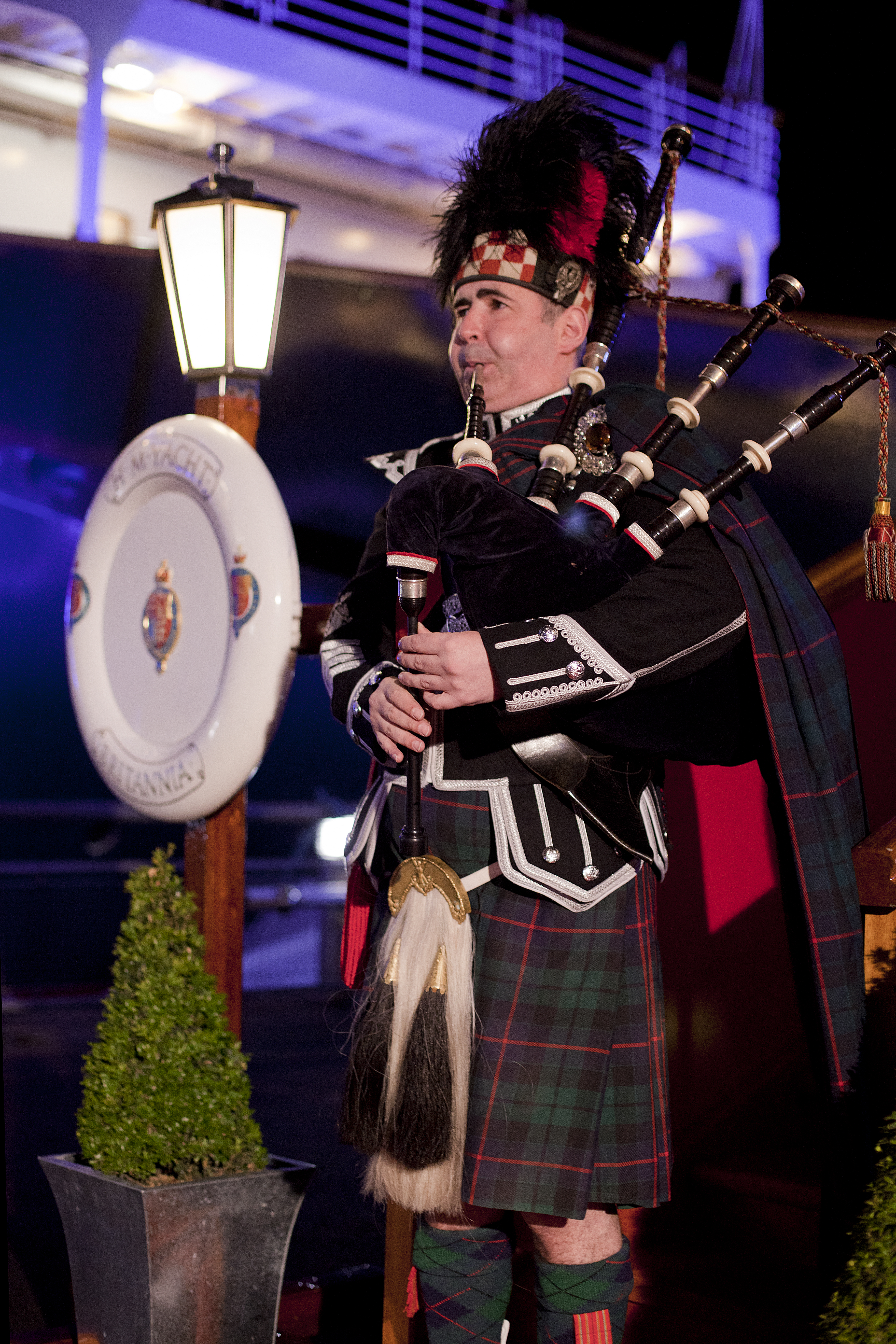 Whilst I’m very proud to be the piper on Britannia and Fingal, I also own Alba Entertainments, which is a corporate entertainment business. We have various types of bands and solo artists from background music through drinks and cocktails, through to your party band for evening. We often supply Britannia with the grande finale of a Pipe Band Beat Retreat to finish off the night in style.