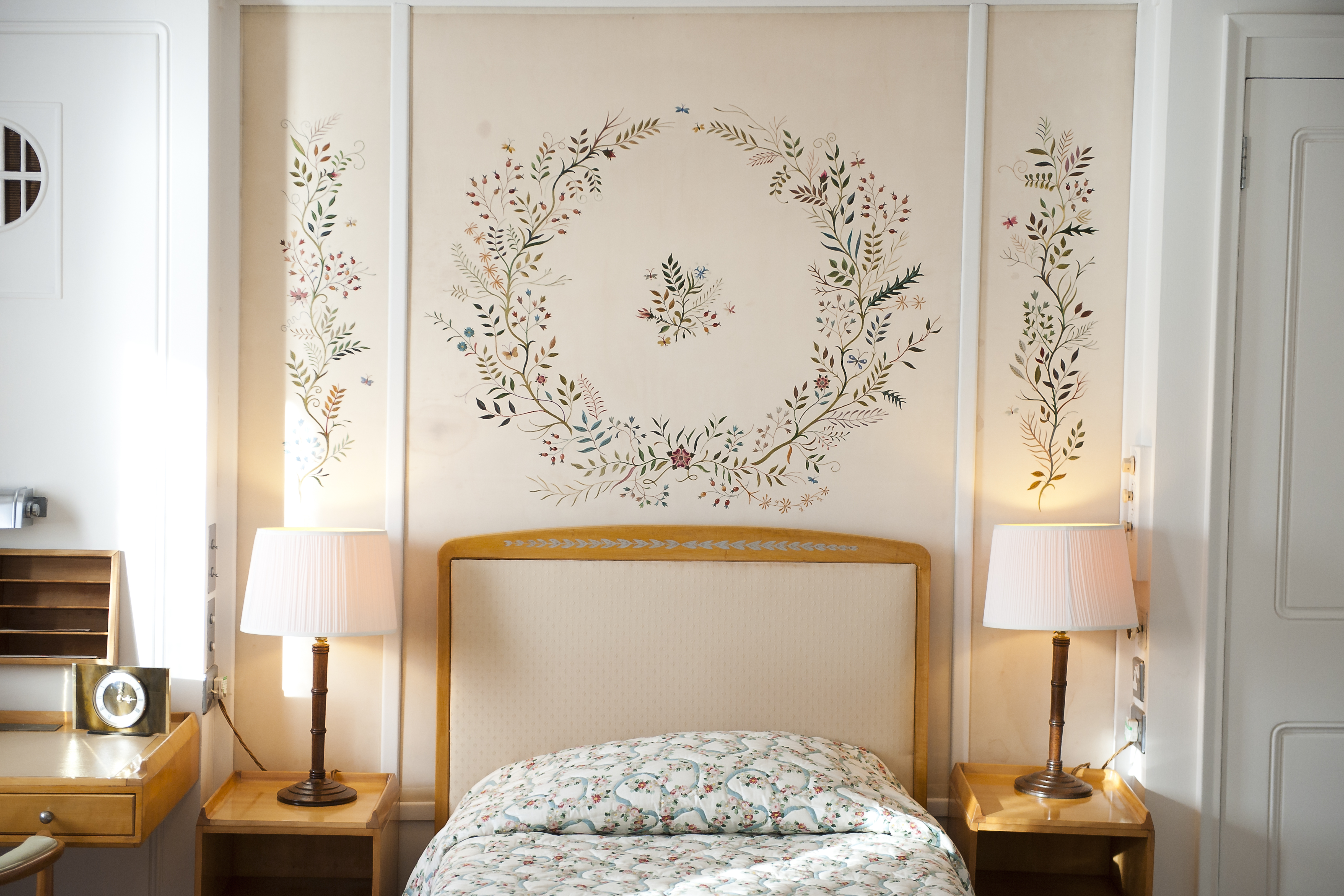 Her Majesty The Queen’s bedroom, which can be seen during a tour of Britannia, is a key room for many scenes on board. Every detail of the room was carefully considered, right down to the decorative wall light fittings. An eye-catching detail within the room, dating back to 1953, is an embroidered silk panel above The Queen’s bed. The panel was specially commissioned for Her Majesty and, as you can seen in the below pictures, was beautifully replicated.