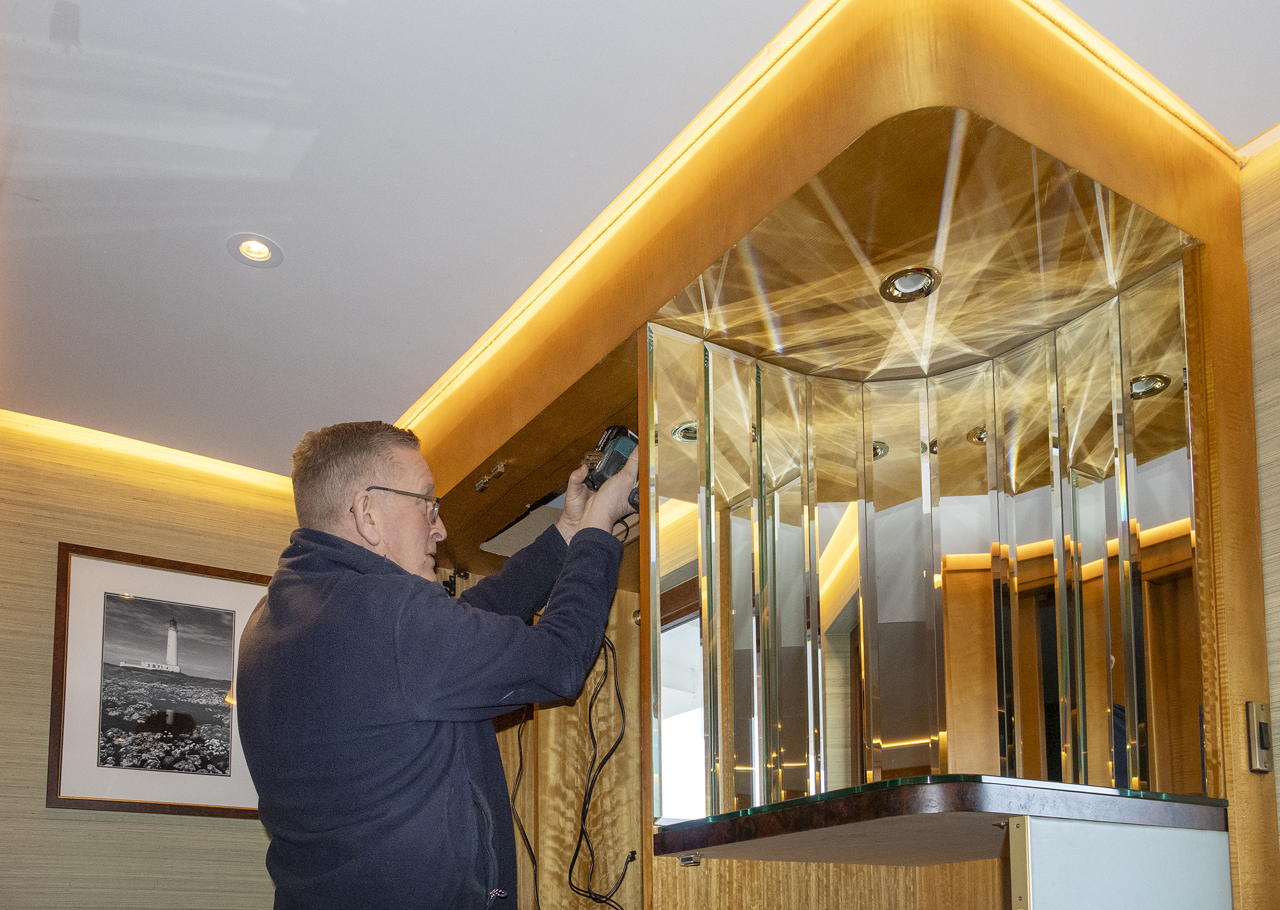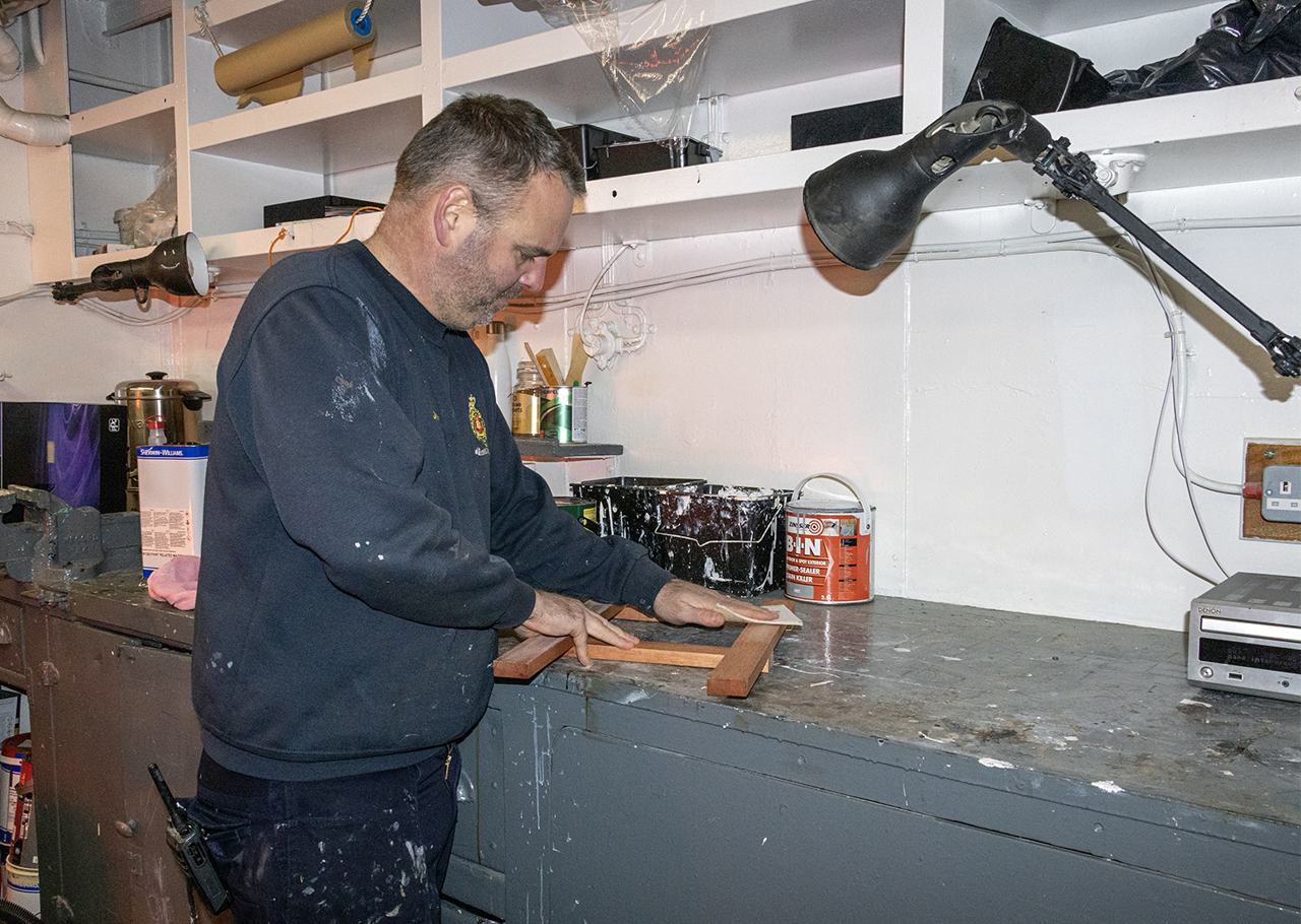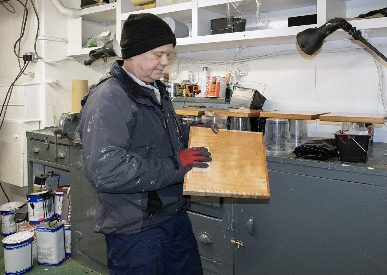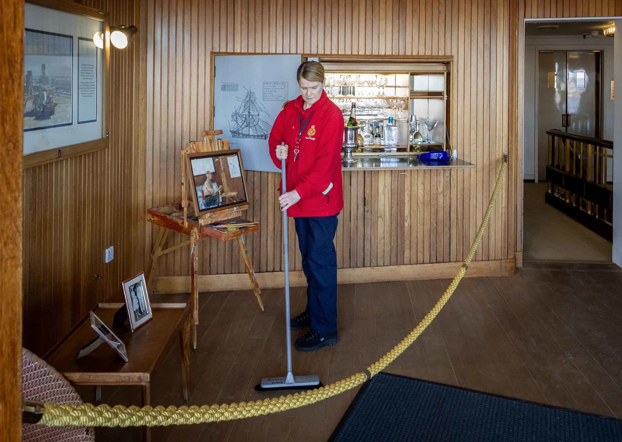 Housekeeper, Lynne, making sure that The Royal Yacht Britannia's Sun Lounge is cleaned to perfection.