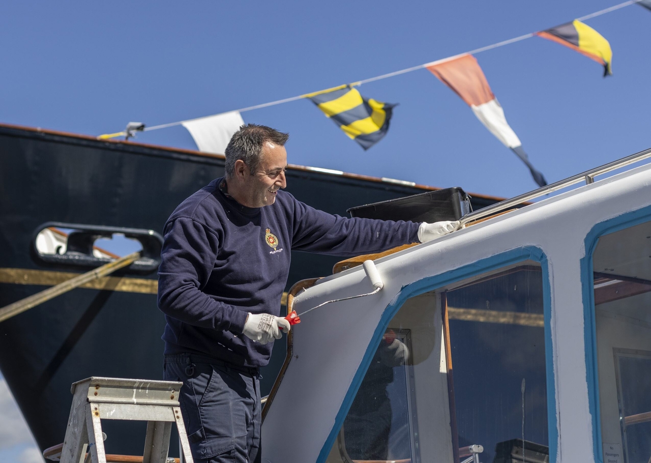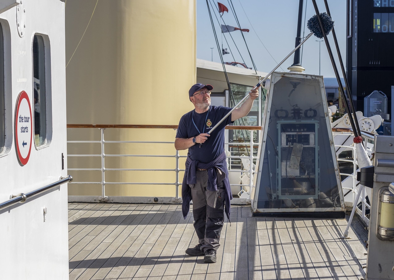 The Housekeeping and Maintenance teams work 363 days of the year to keep Britannia shipshape. Billy, Facilities Officer, continued this work, dusting on a sunny day.