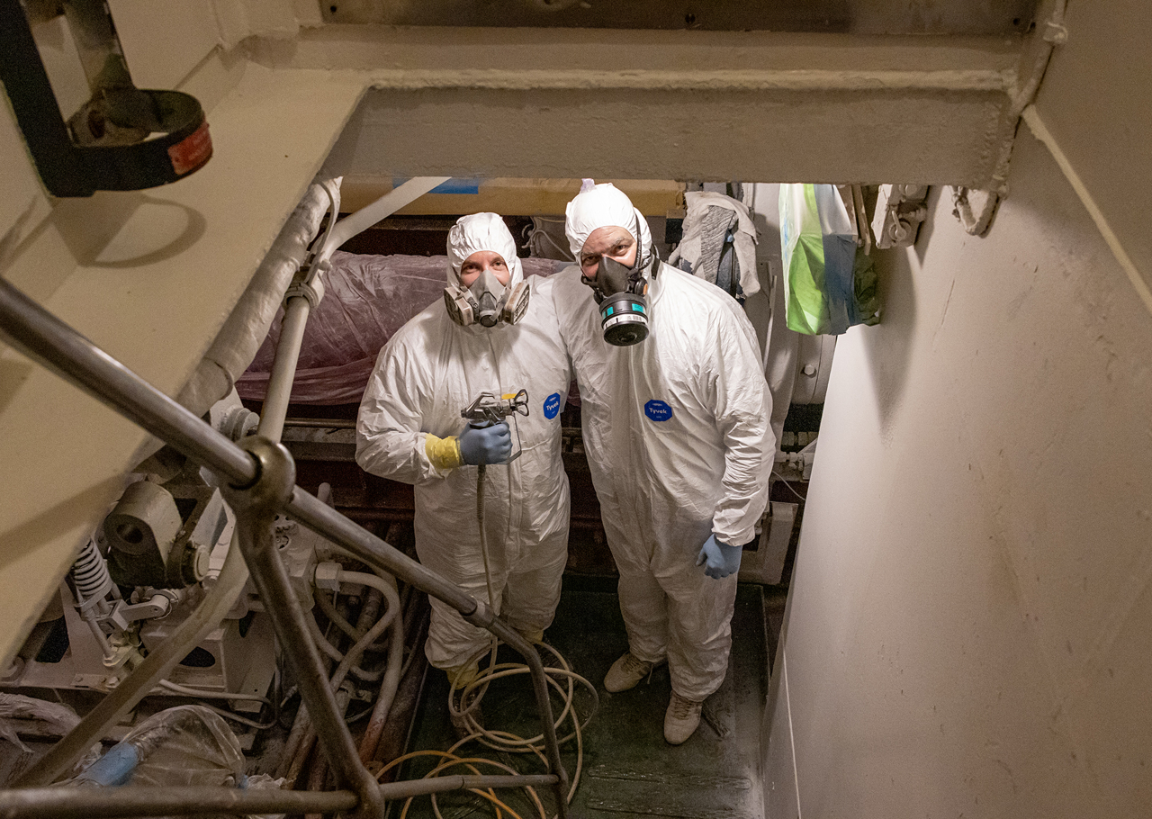 The handrails are a long term maintenance job for the team as they remove, sand, varnish and replace the handrails, maintaining the ship for future generations.