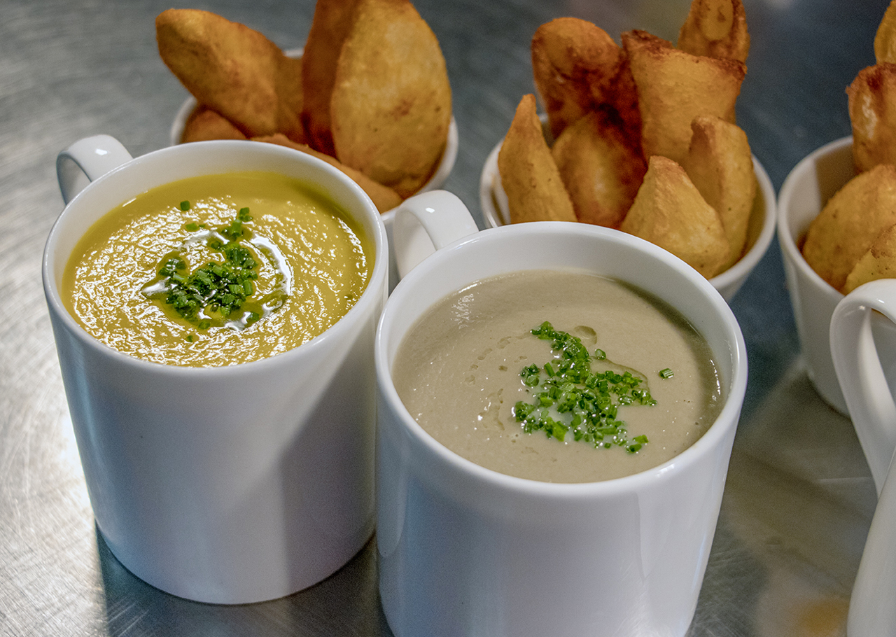 Our soups including carrot and flat-field mushroom, accompanied by smoked paprika potato wedges, are just one reason to stop in the glorious Tearoom.