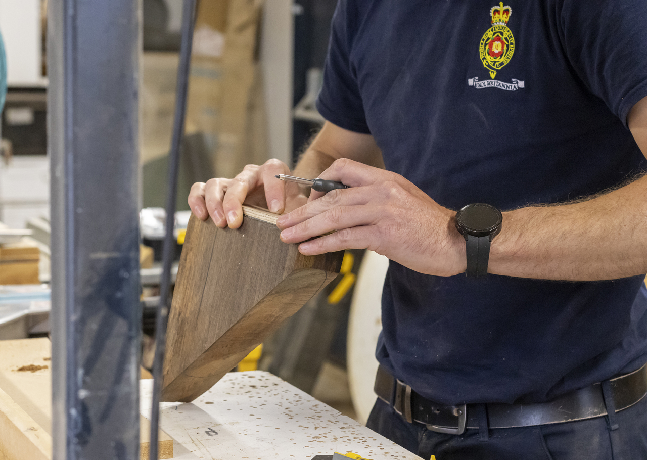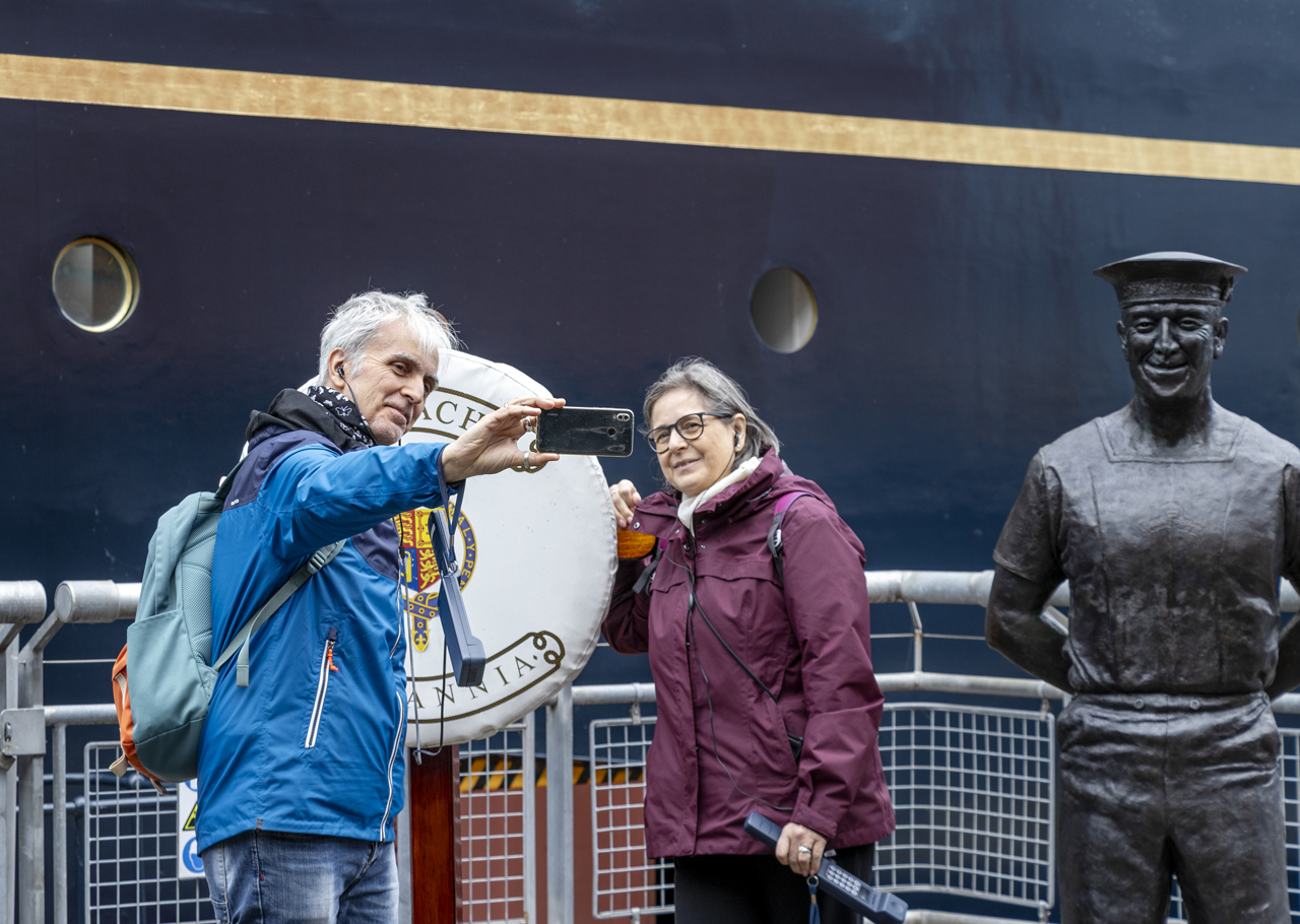 On the quayside a statue of Ellis 'Norrie' Norrell MVO RVM, Britannia's longest-serving Royal Yachtsman can be seen.