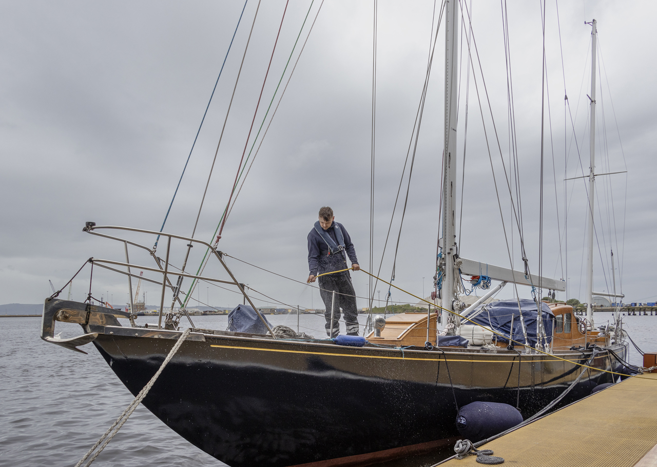 Ben washing down Bloodhound, the Royal Racing Yacht owned by Queen Elizabeth II and Prince Philip in the 1960s.