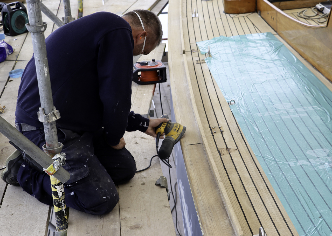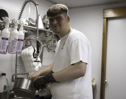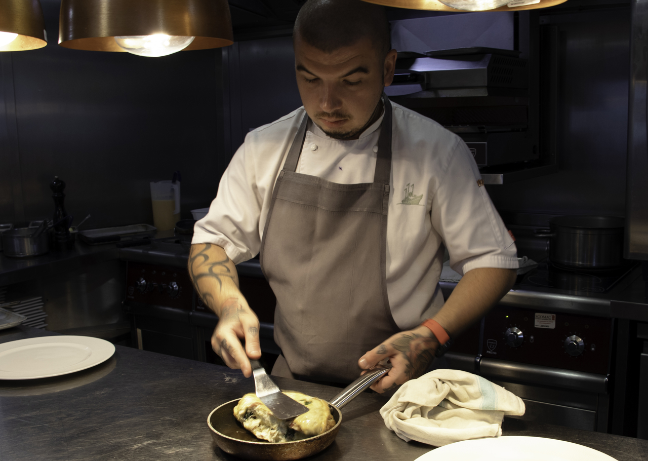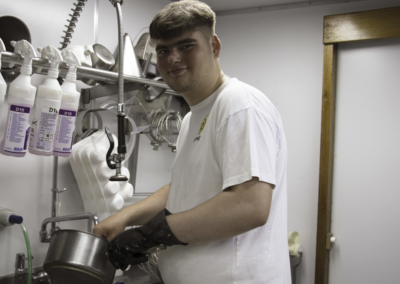 Aboard Fingal, Breakfast Chef, Marcin preparing an omelette.