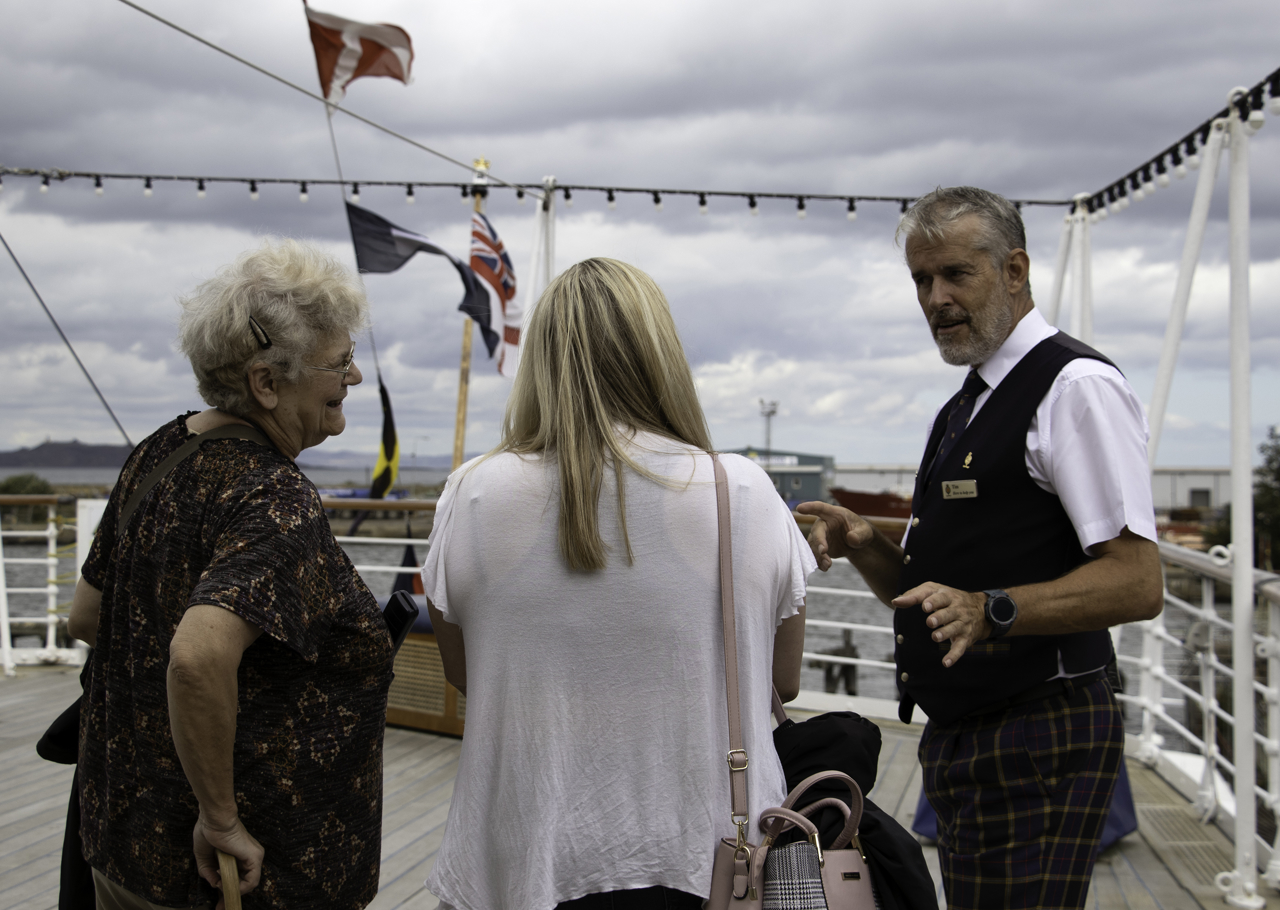 Visitor Assistant, Tim, chatting to visitors on the Verandah Deck.