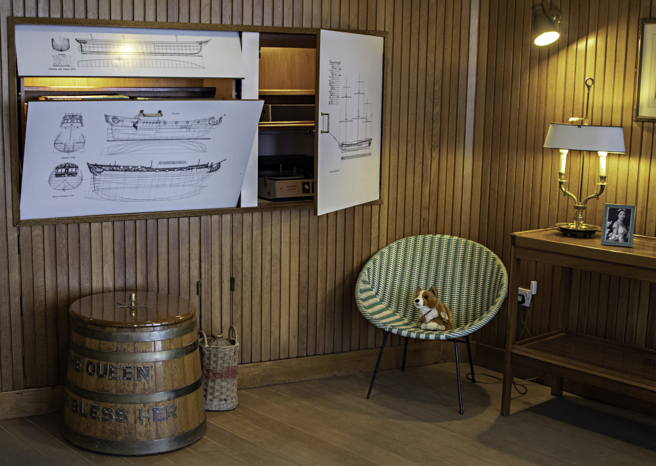 Within the Sun Lounge, the ‘Rum Tot’ tub dates from Queen Victoria’s reign. The tub was used on Britannia to issue the Yachtsmen’s daily rum ration up until 1970 when the Navy’s rum issue was abolished.