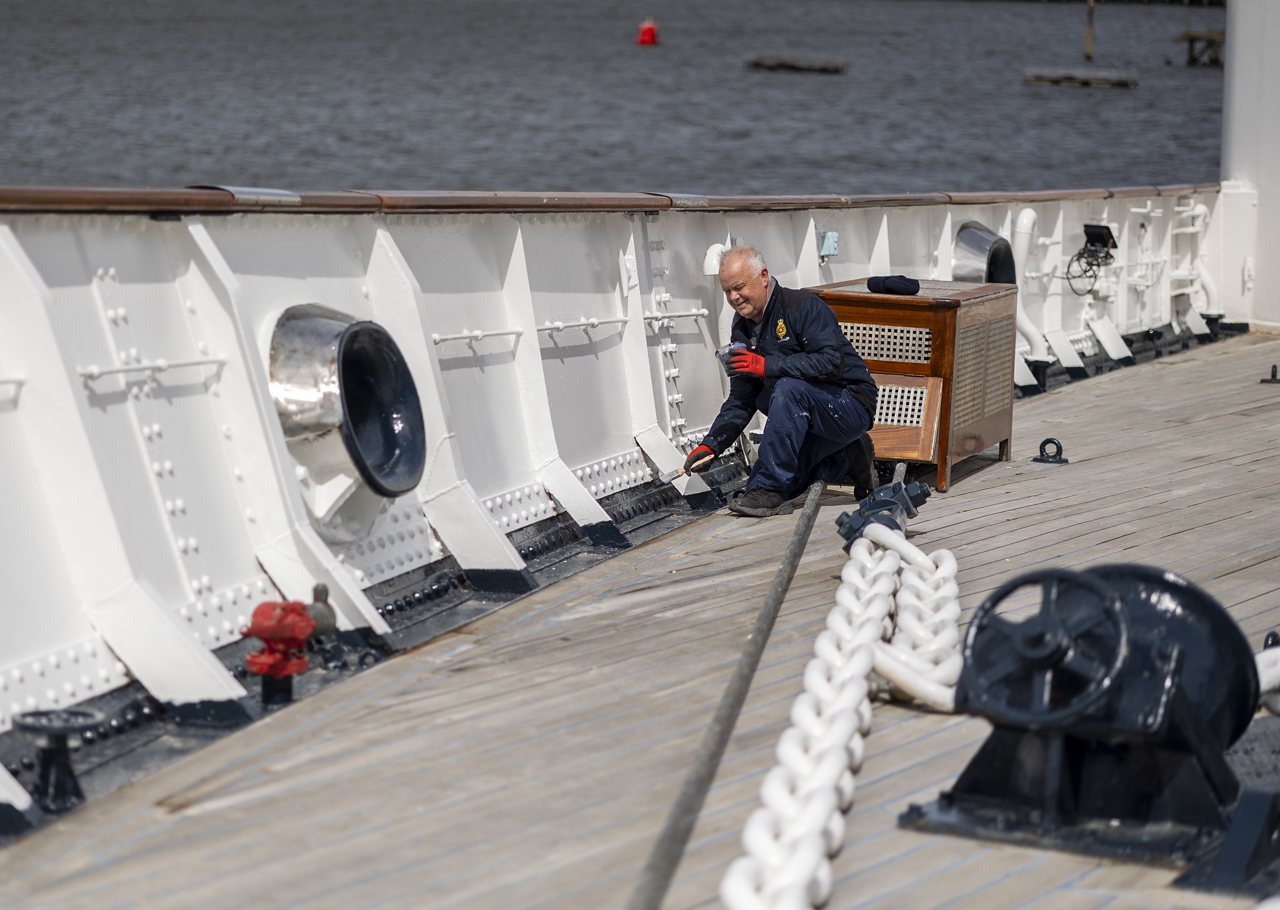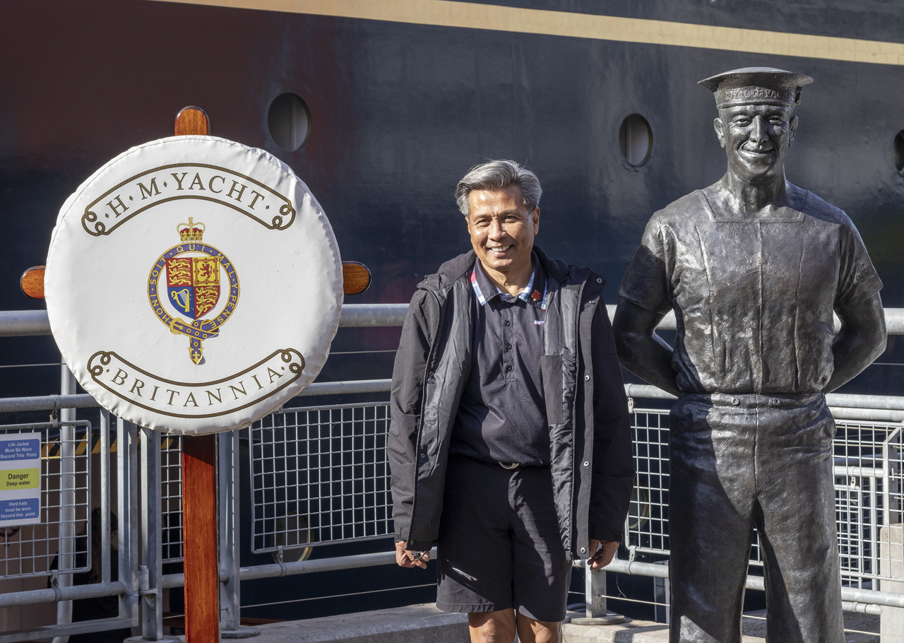 Posing for a photo next to the statue of the longest serving Royal Yachtsman, Ellis 'Norrie' Norrell MVO RVM, is a favourite spot for visitors to The Royal Yacht Britannia.
