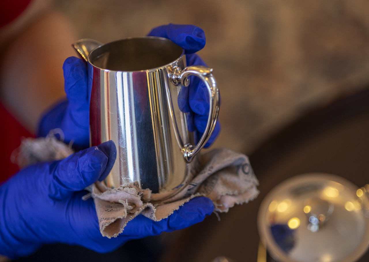 In the Silver Pantry, our Housekeeping team work hard to keep all items gleaming. During Royal service, every single item had to be polished daily.