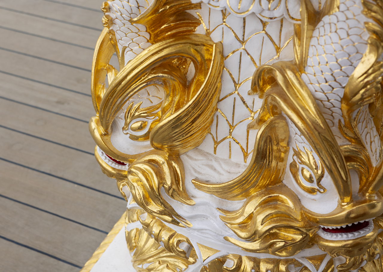 Spot the intricate white and gold carved details on the replica binnacle, located on the Verandah Deck.