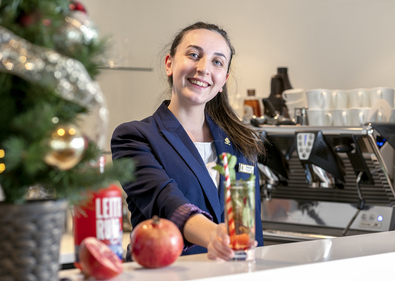 Martina, Food & Beverage Supervisor, preparing a refreshing cocktail from the Tearoom's drinks menu.