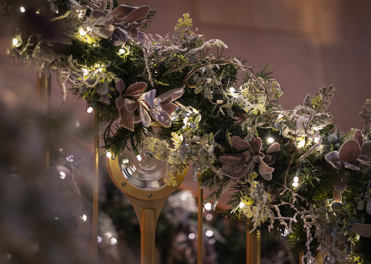 Housekeepers, Lynne and Aiga, making sure Britannia's festively decorated Grand Staircase is kept in shipshape condition.