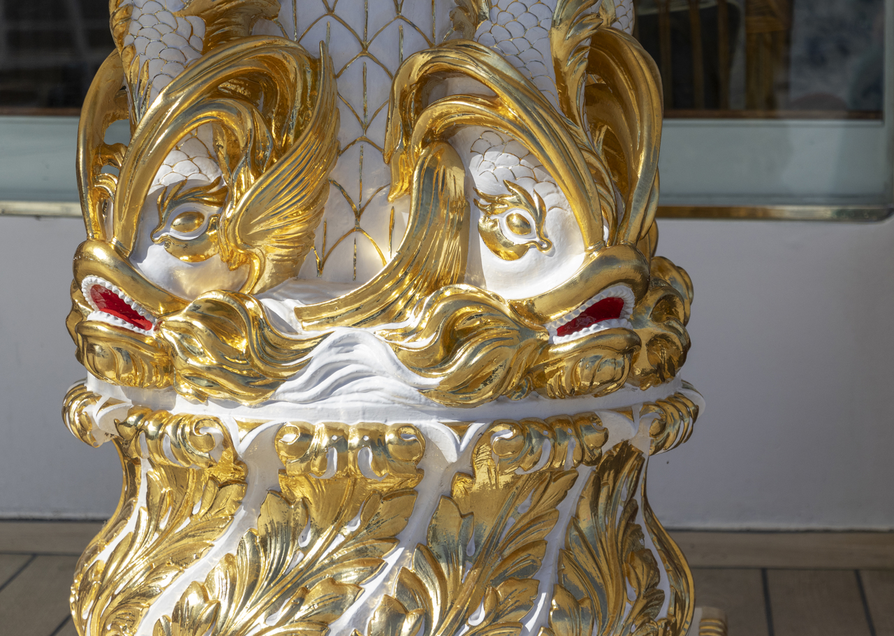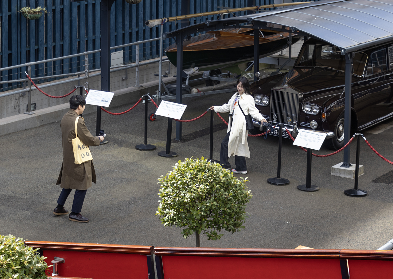 A garage to house a car onboard was considered an essential for overseas visits. Don't miss the beautiful Rolls-Royce Phantom V displayed on the quayside.