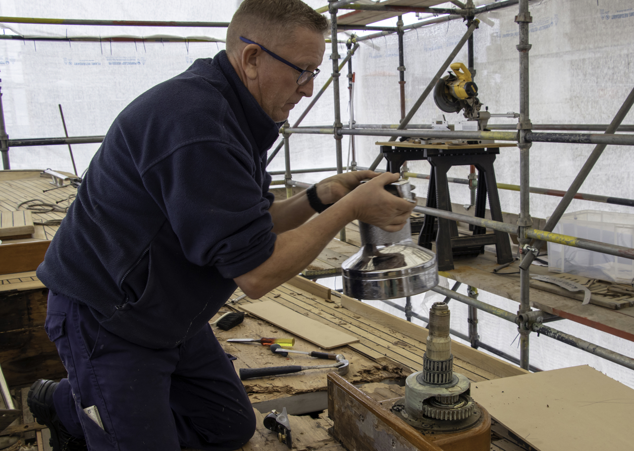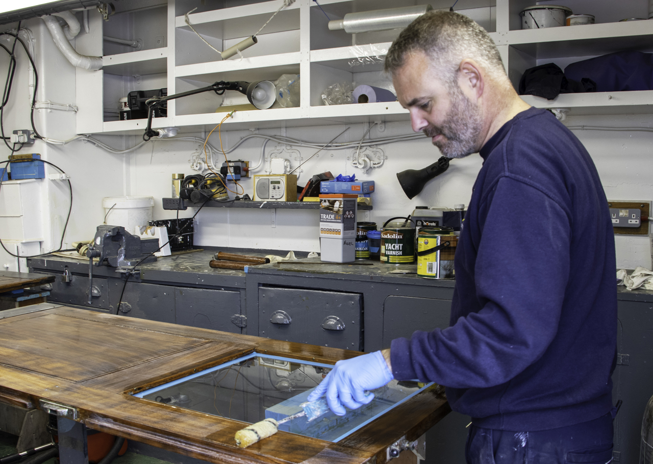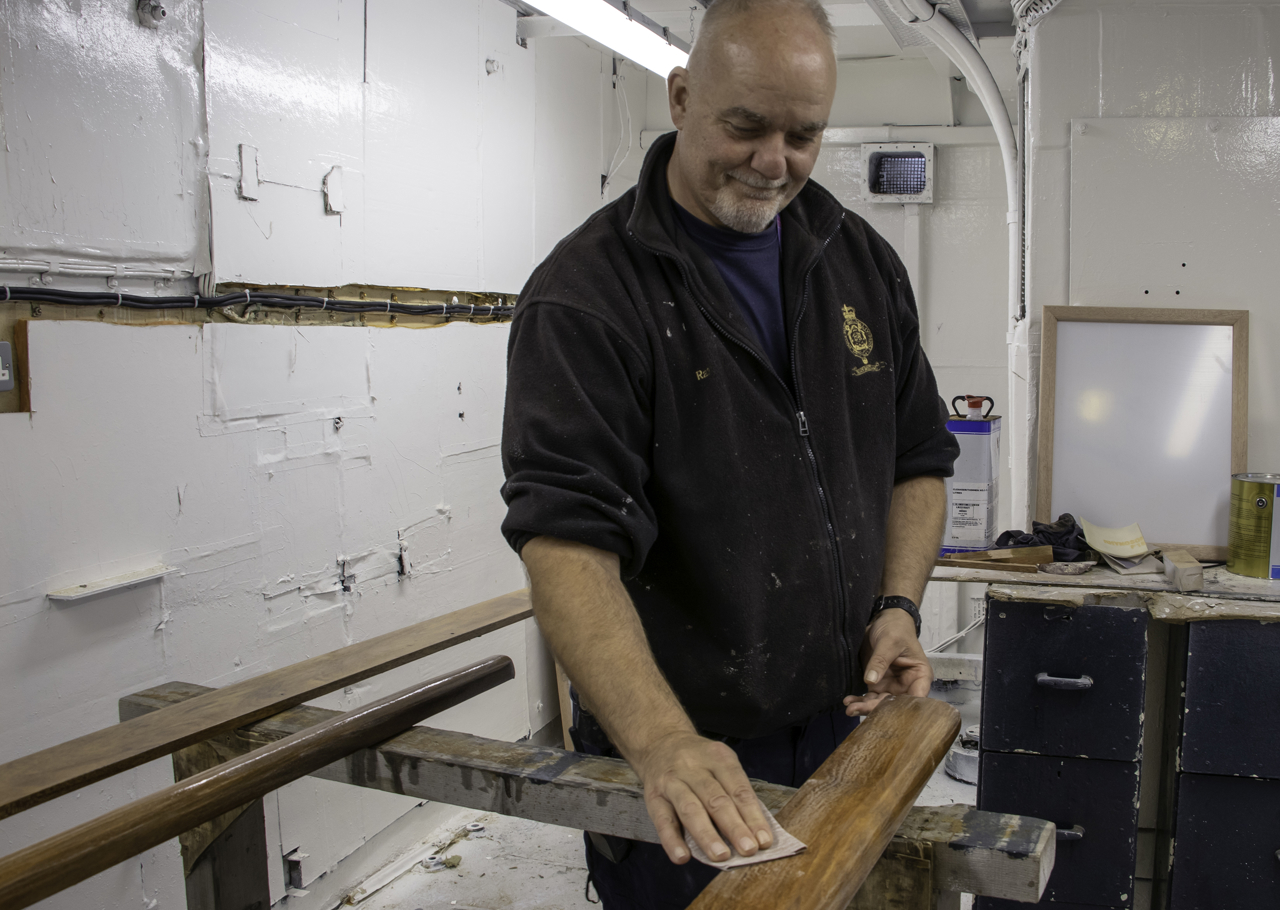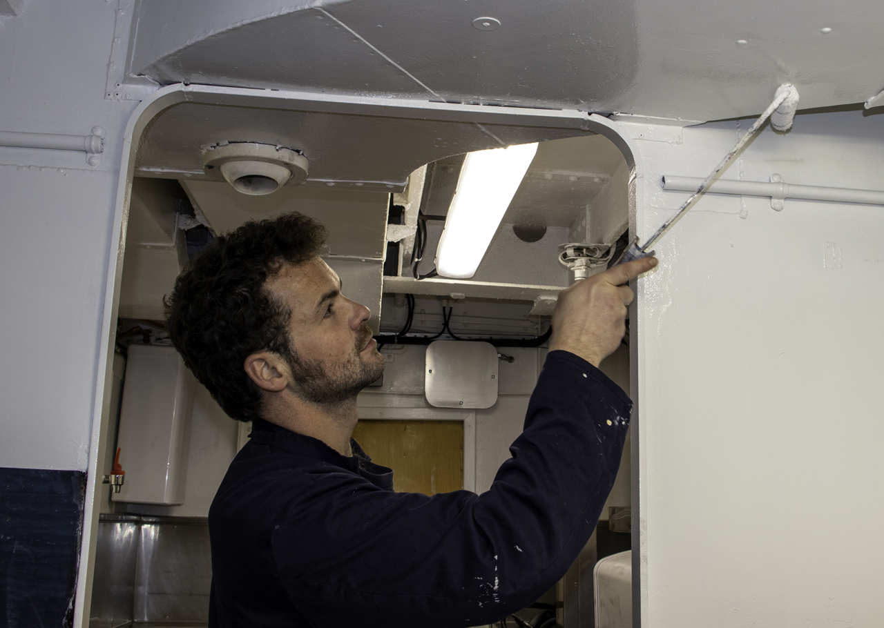 Ewan applying a fresh coat of paint to the Training Room Galley, which was the Junior Rates Scullery.