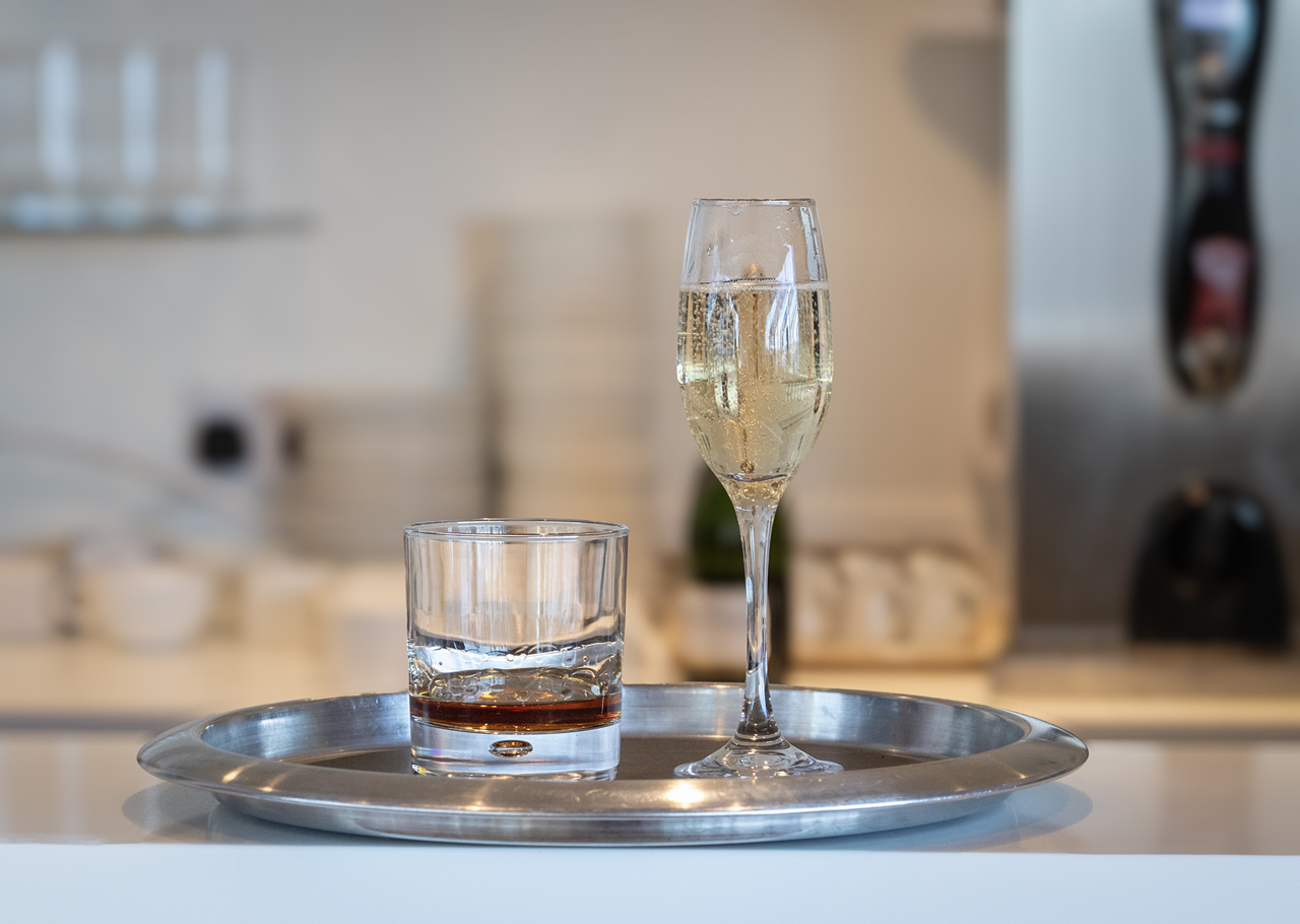 Freshly poured cocktail and a glass of Champagne to toast a visit in the Royal Deck Tearoom.