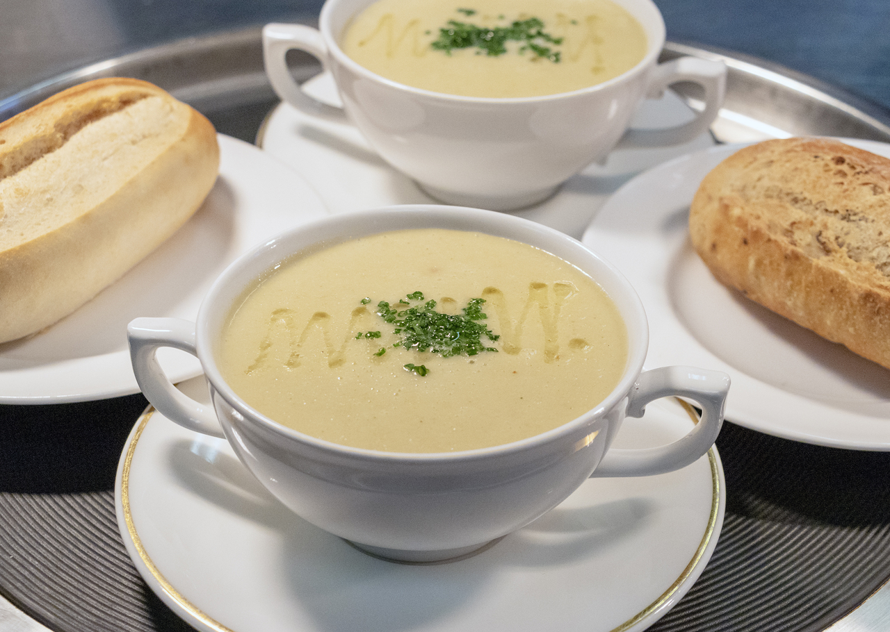 Traditional Cullen Skink Soup ready to be served in the Galley.