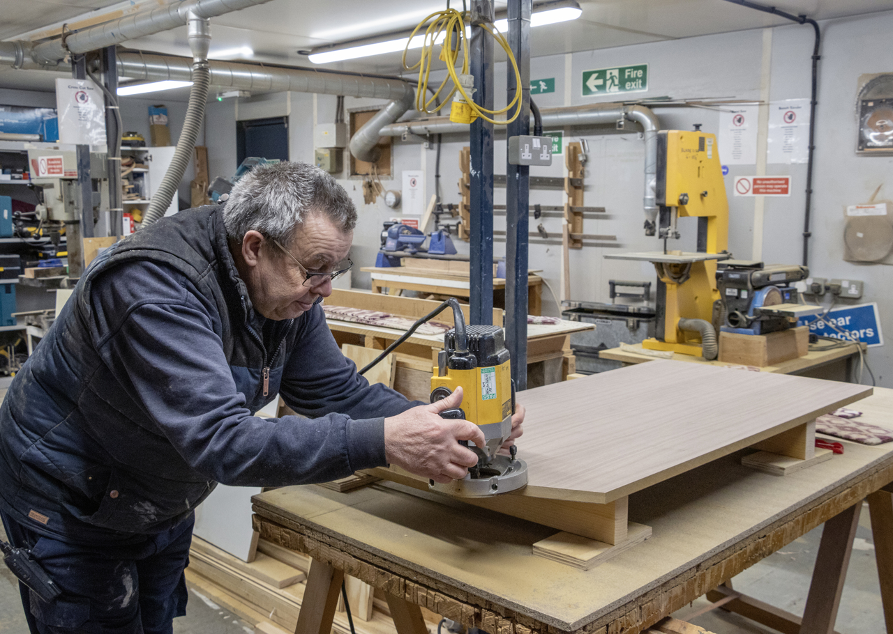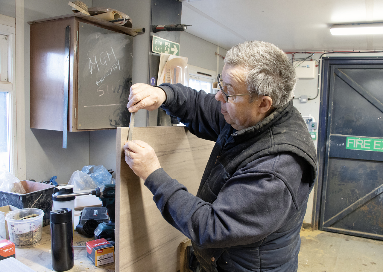 Stuart fixing the non return valve for the installation of Galley ovens.