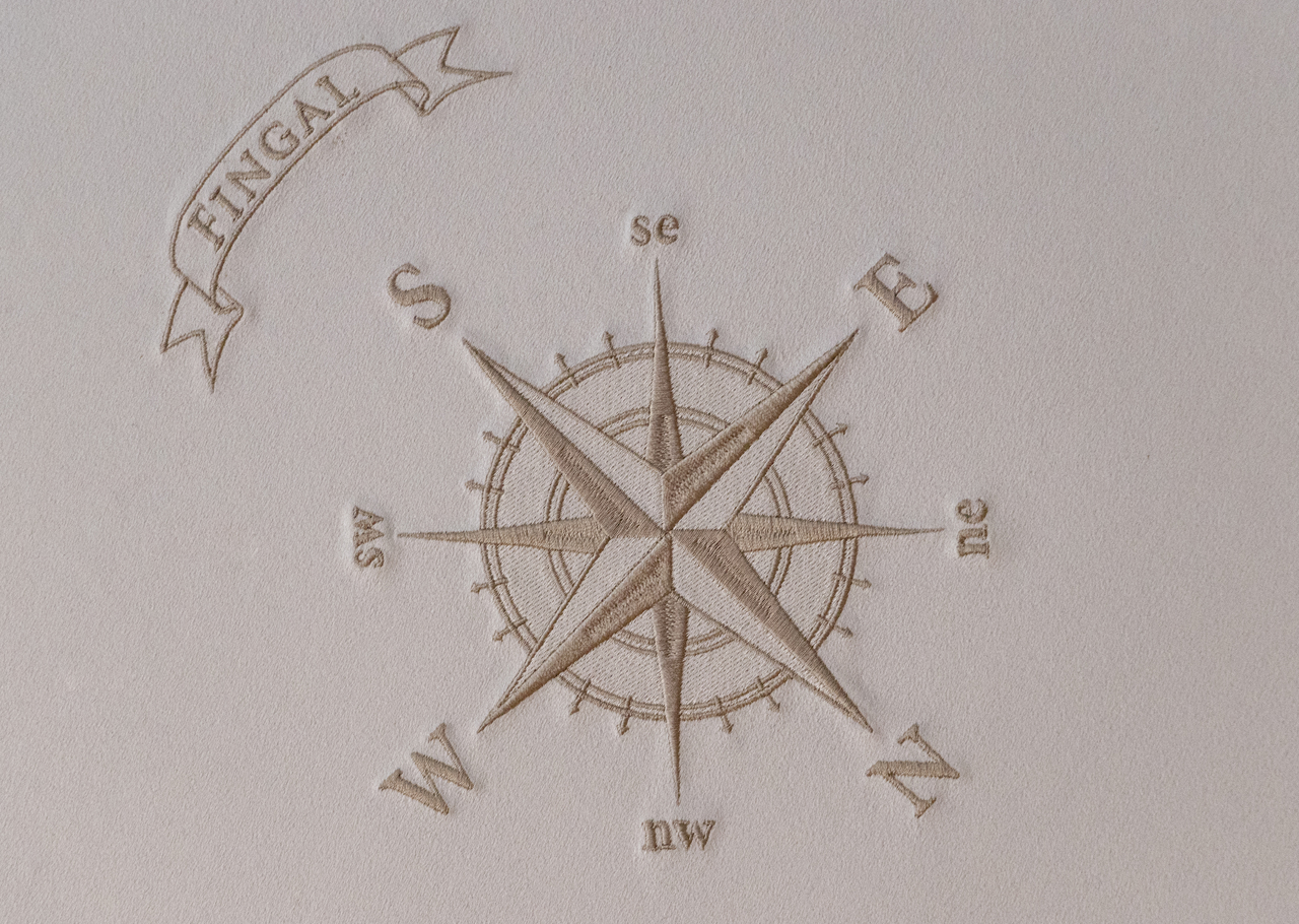 Every cabin on Fingal features a beautiful compass pointing due North.