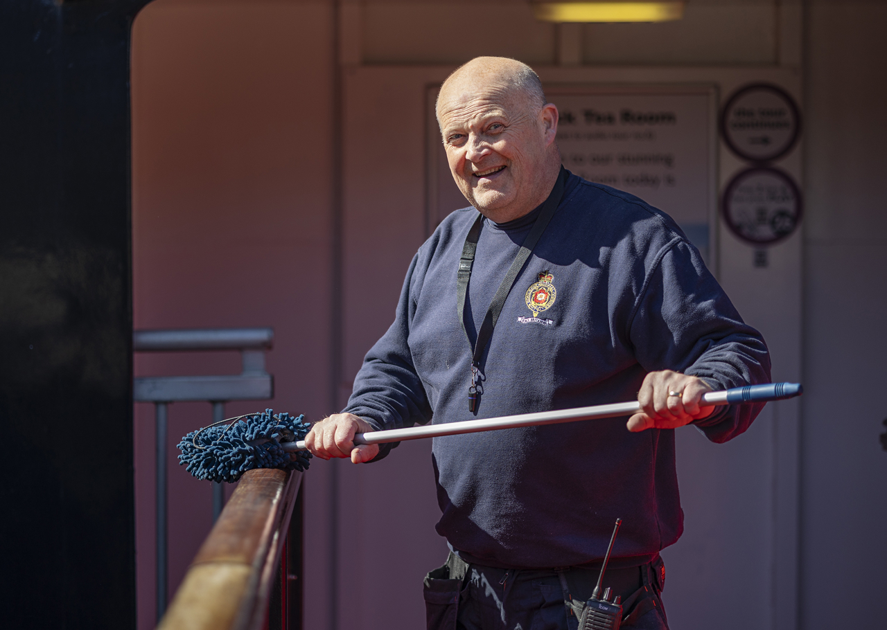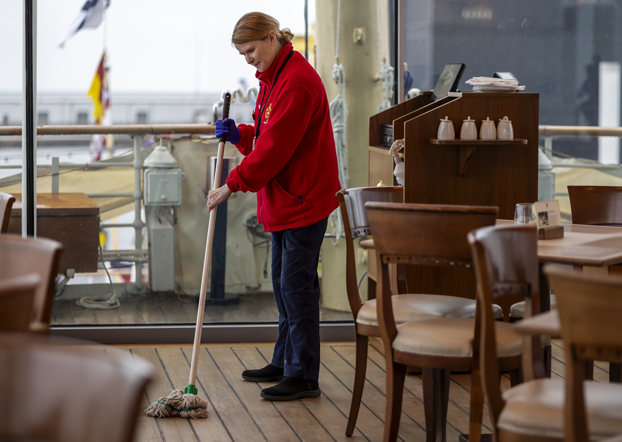 Lynne, Housekeeper, ensuring that the Royal Deck Tearoom is ready to welcome visitors to enjoy the sweet and savoury treats.