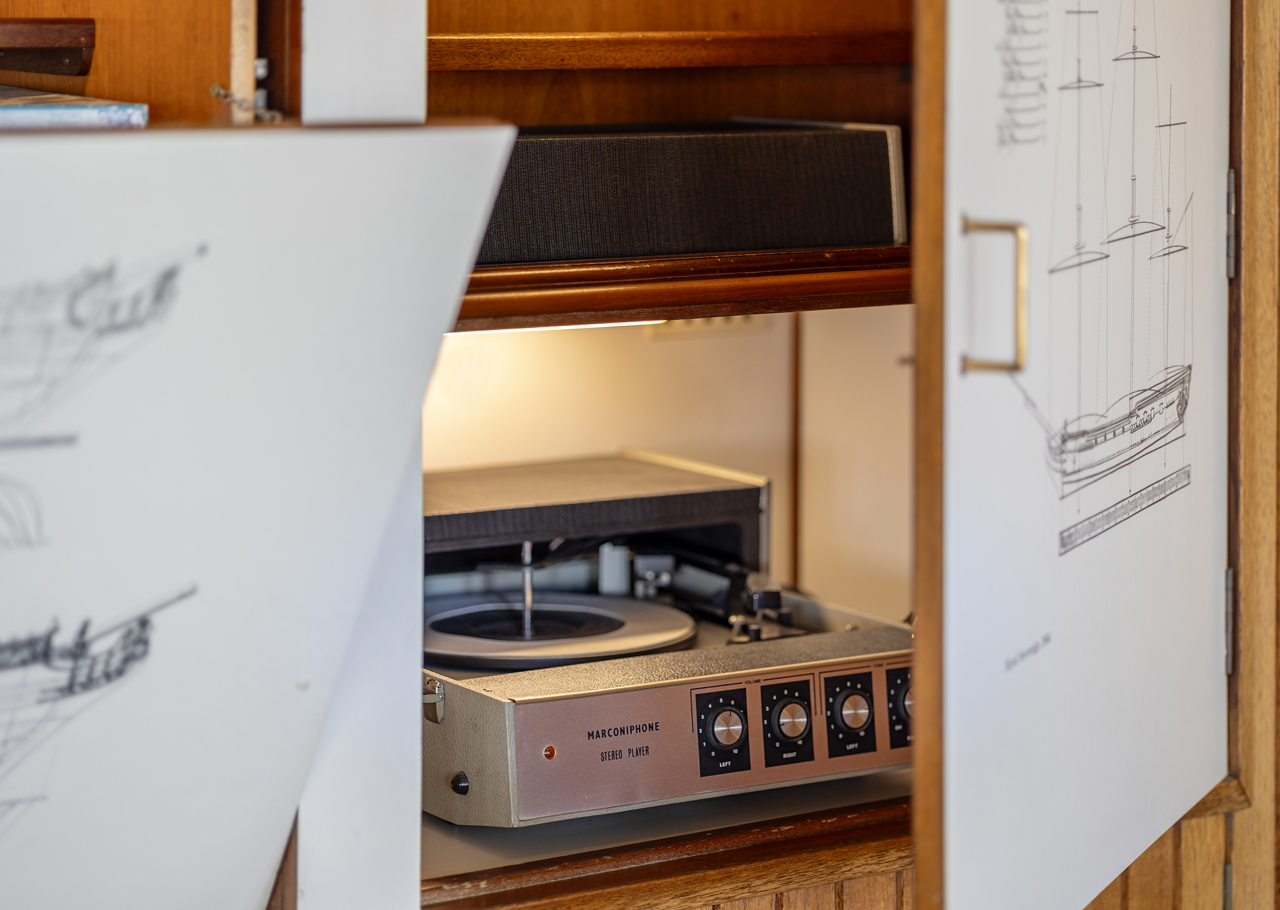 The Sun Lounge was one of Queen Elizabeth II's favourite places aboard the Royal Yacht. Cleverly concealed behind wall panels is a record player, as well as a games store and drinks cabinet.