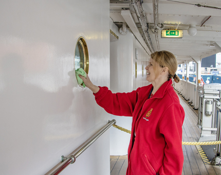 The crew love to share the unique history of Fingal. Guests can walk through the ship's beautiful Engine Room.