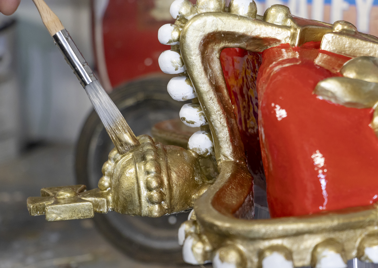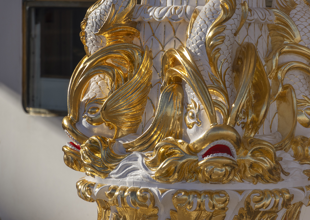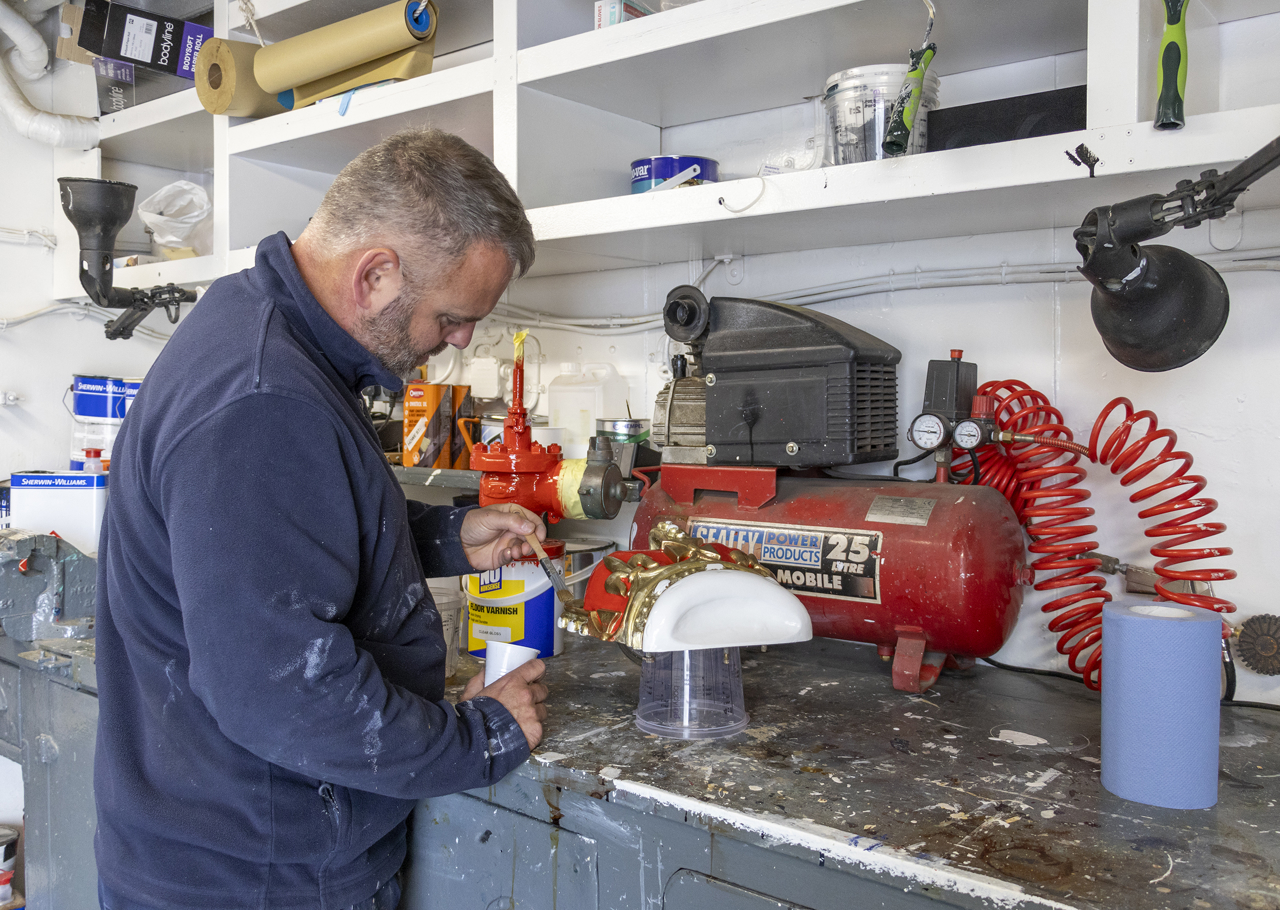 The gorgeous details of the replica 19th century binnacle from the Royal George. Visitors can view this decorative binnacle on the Verandah Deck.