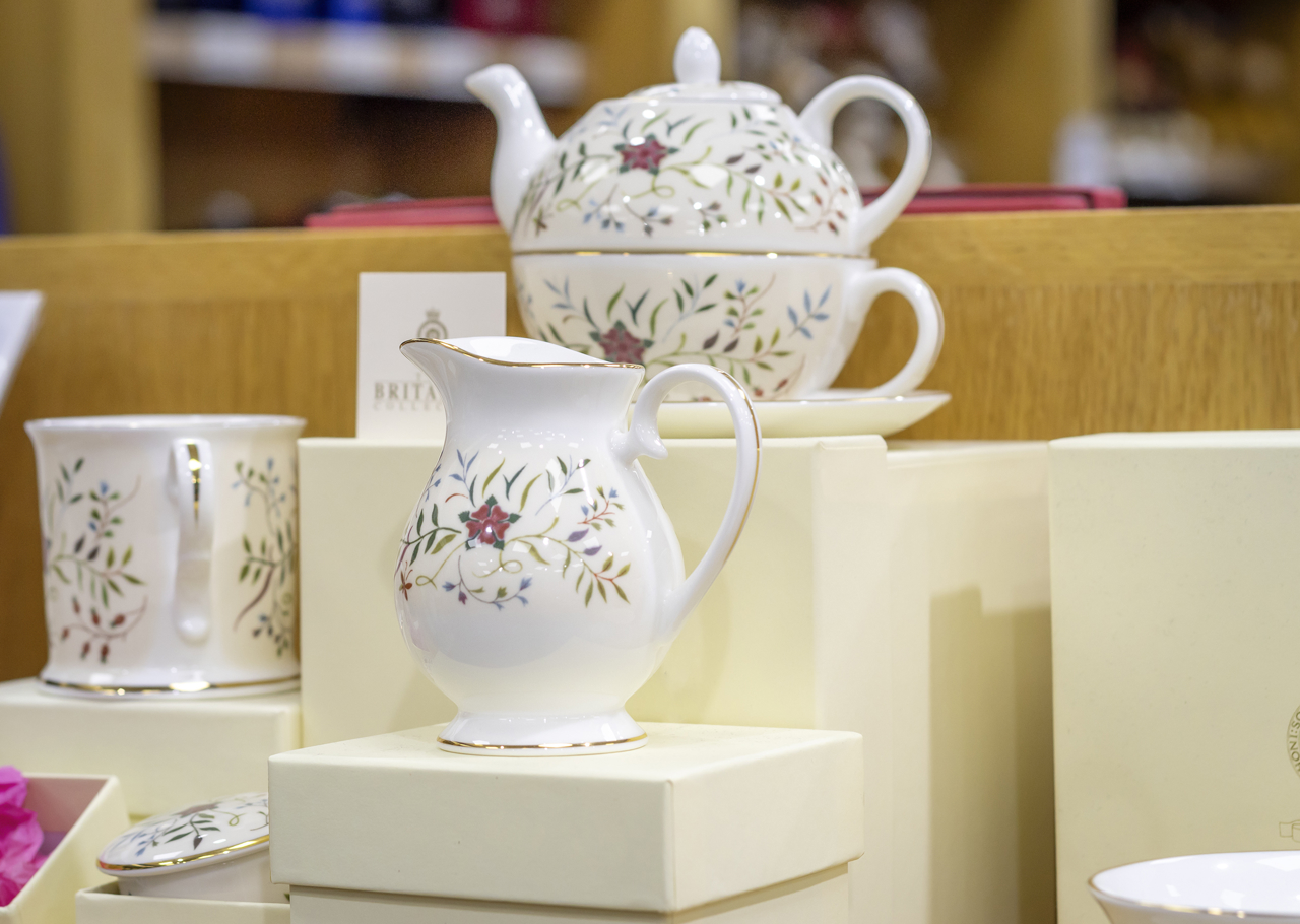 The exquisite Embroidery Collection, made from fine bone china, was inspired by the hand-embroidered silk panel in Queen Elizabeth II's bedroom on board Britannia, and is available to purchase in our Gift Shop.