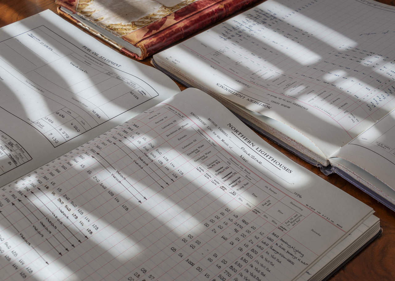 Interesting details of Fingal's past as a Northern Lighthouse Board tender can be found throughout the ship, such as in these log books.