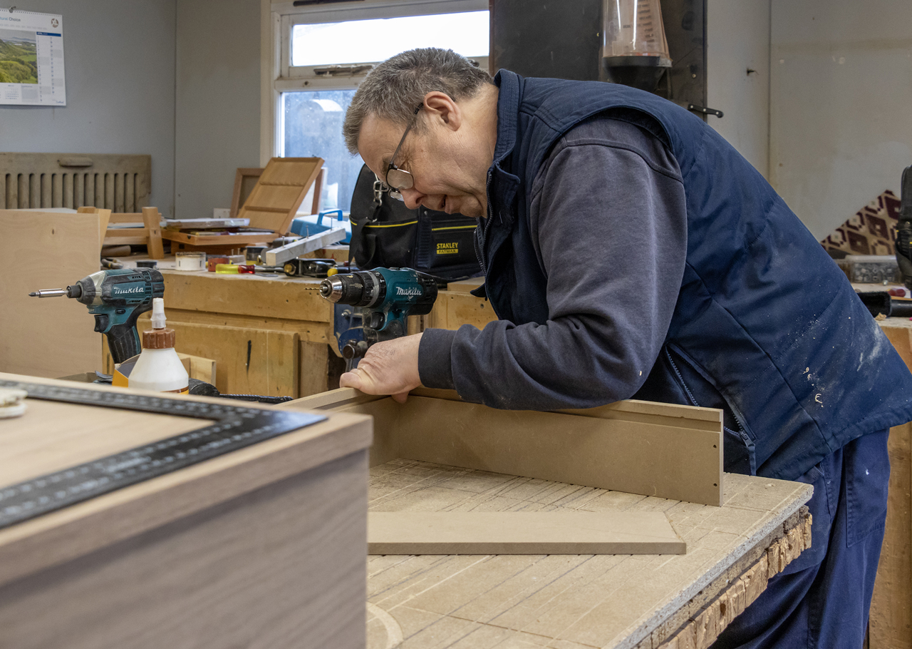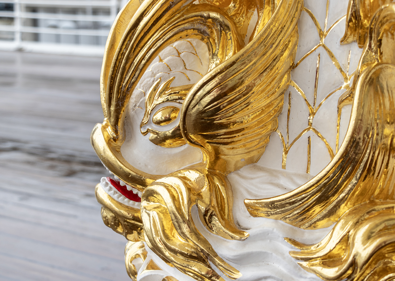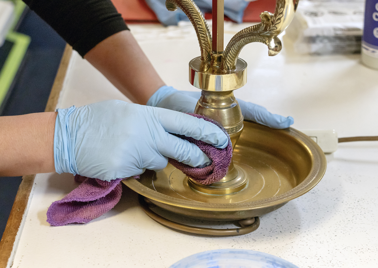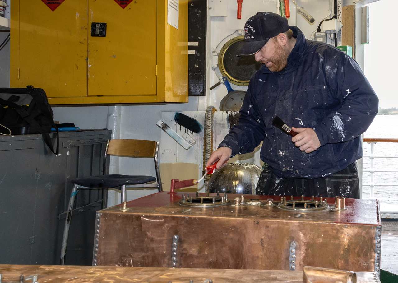 Facilities Officer, Ricky, preserving the elegance and shine on the Grand Staircase, which connects the decks of the State Apartments.