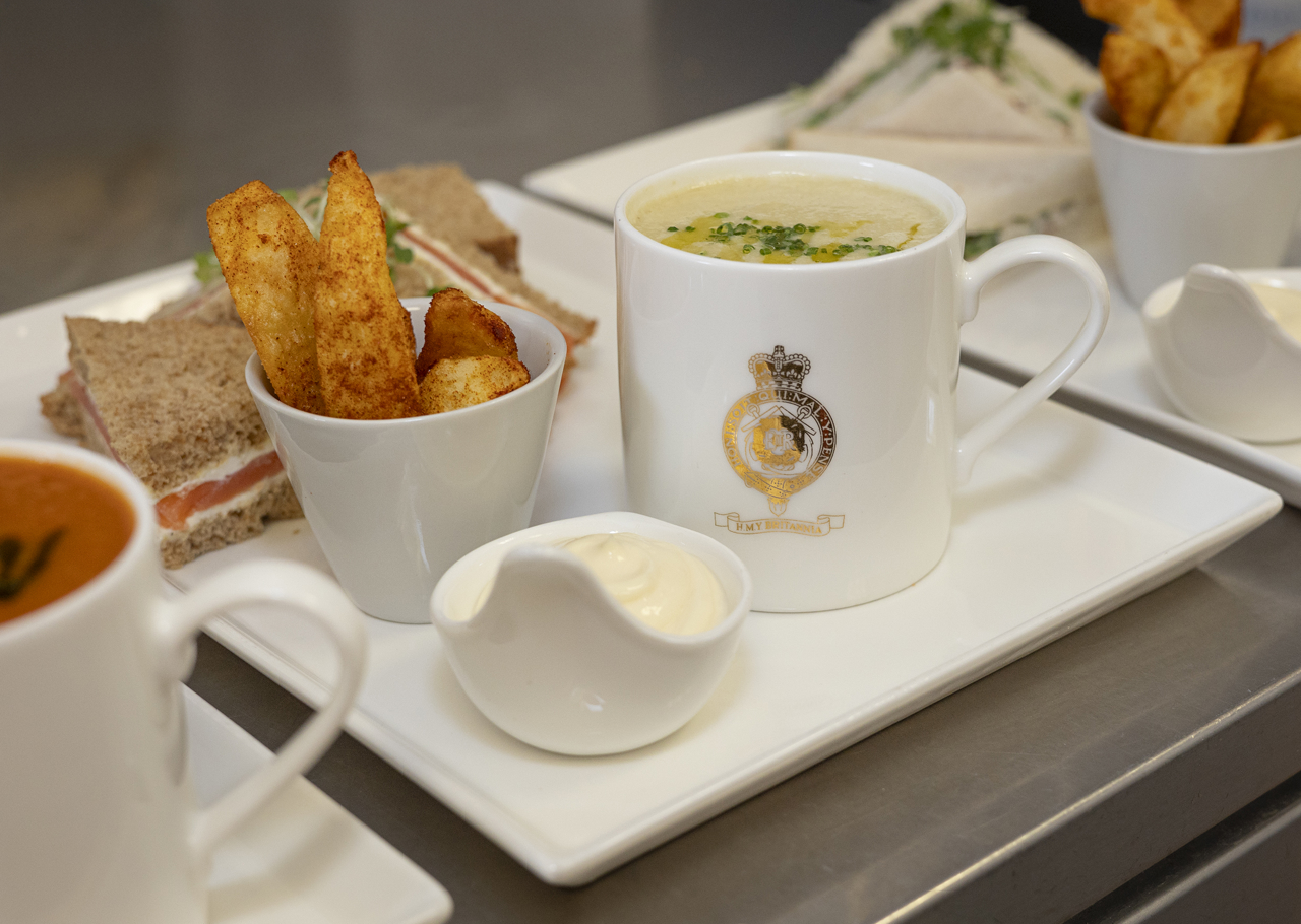Take a moment to re-energise during your tour with a delicious Britannia platter, which includes your choice of soup and sandwich, served with twice cooked smoked paprika potato wedges & garlic mayonnaise.