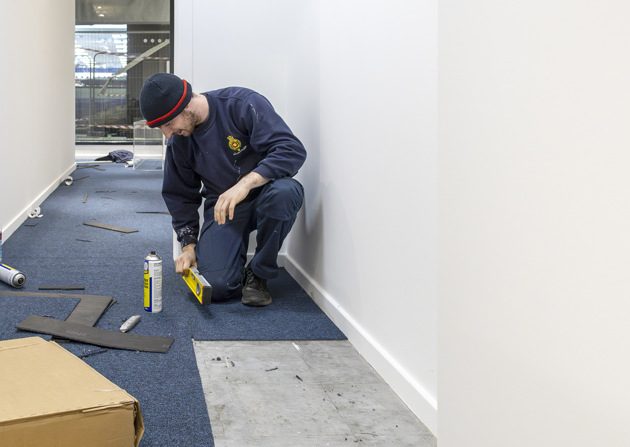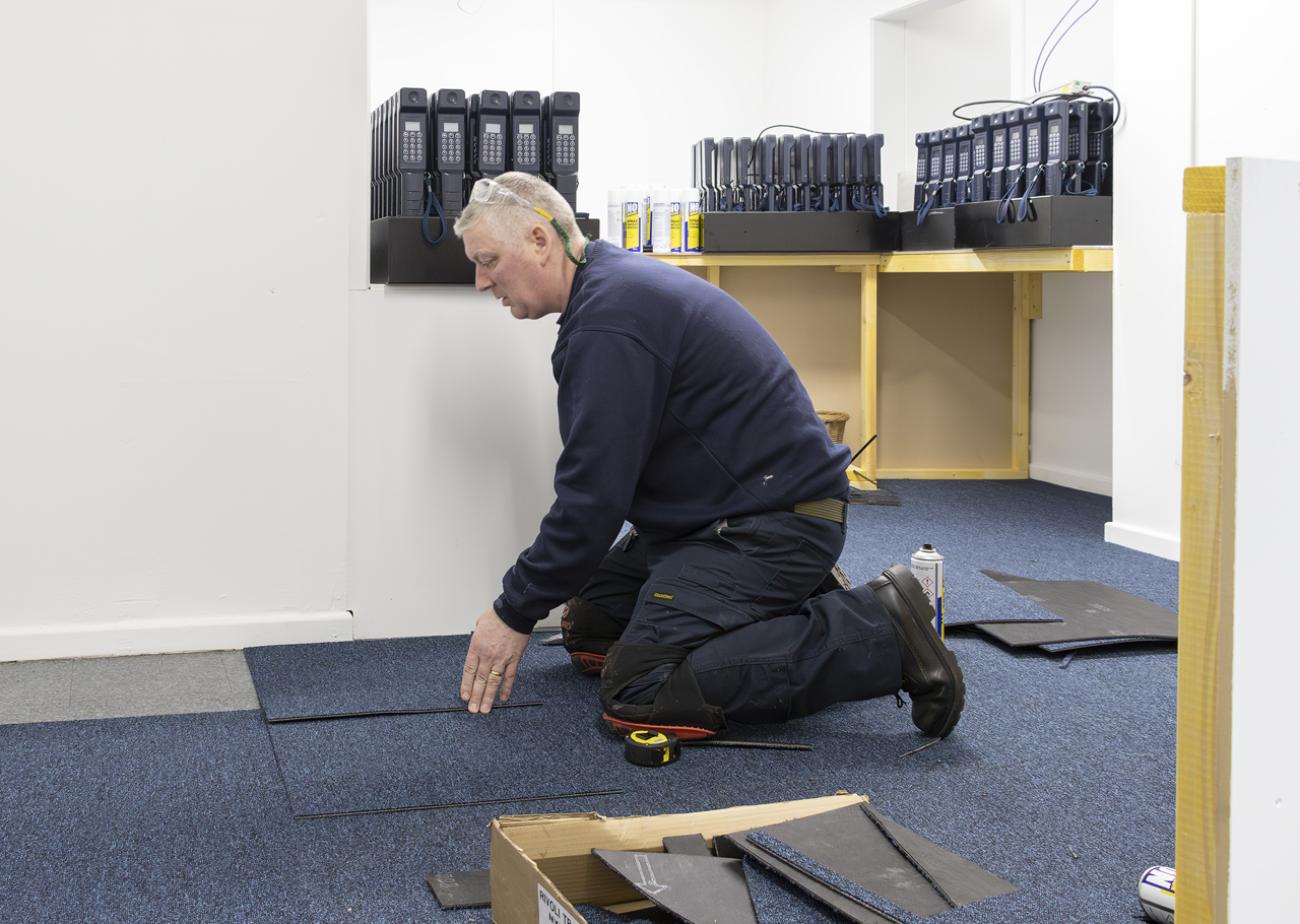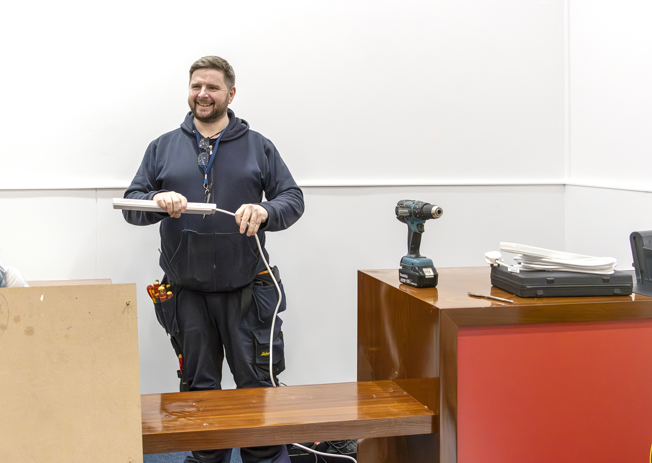 Fitting the new till point in the temporary Gift Shop, which is now open on the Ground Floor of Ocean Terminal Shopping Centre.