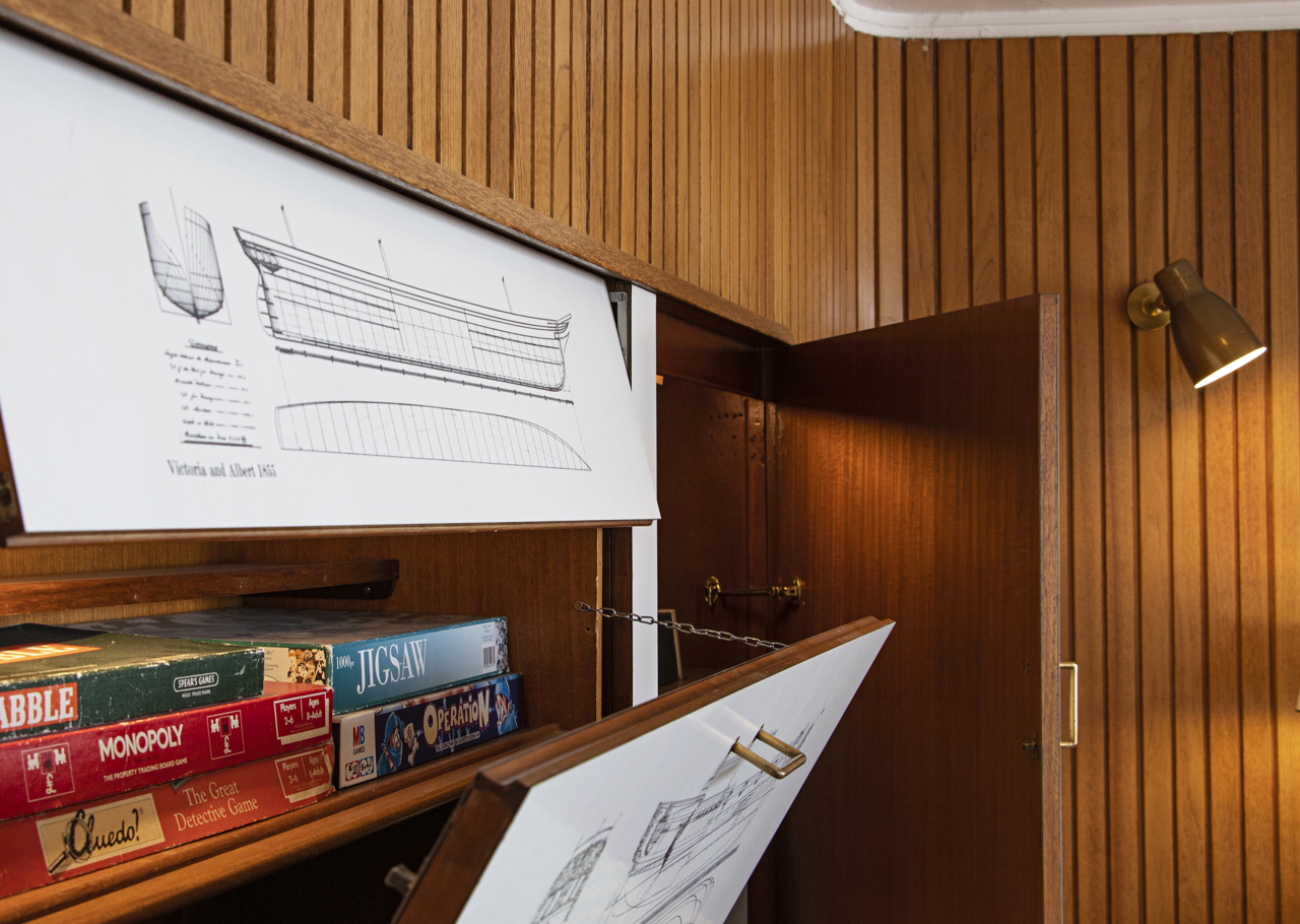 Britannia's Sun Lounge conceals a collection of board games, a pastime enjoyed by the Royal Family during a day at sea.