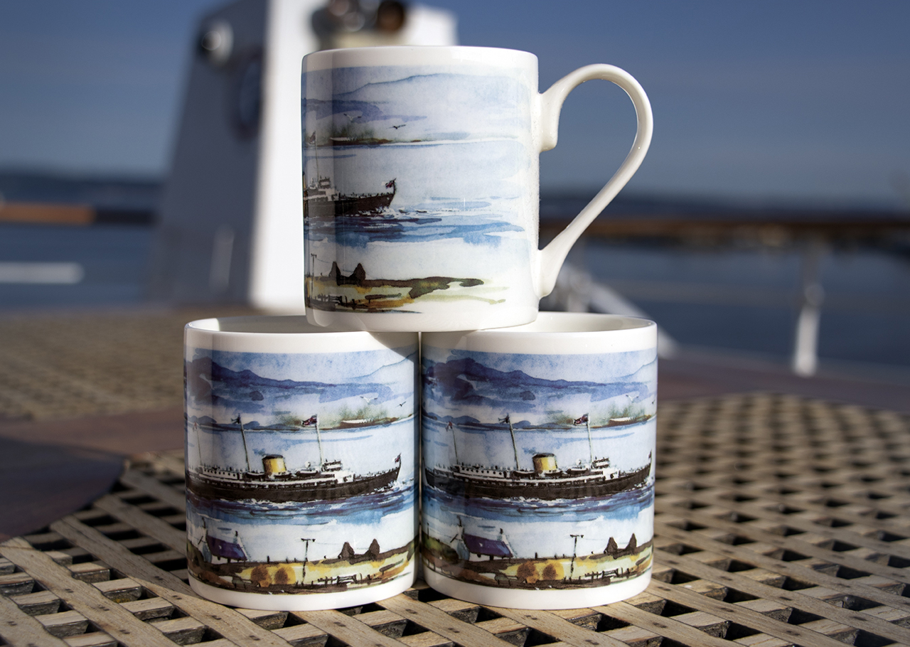 Sip in style with one of the Britannia Gift Shop's illustrated mugs of the yacht sailing in the Western Isles.