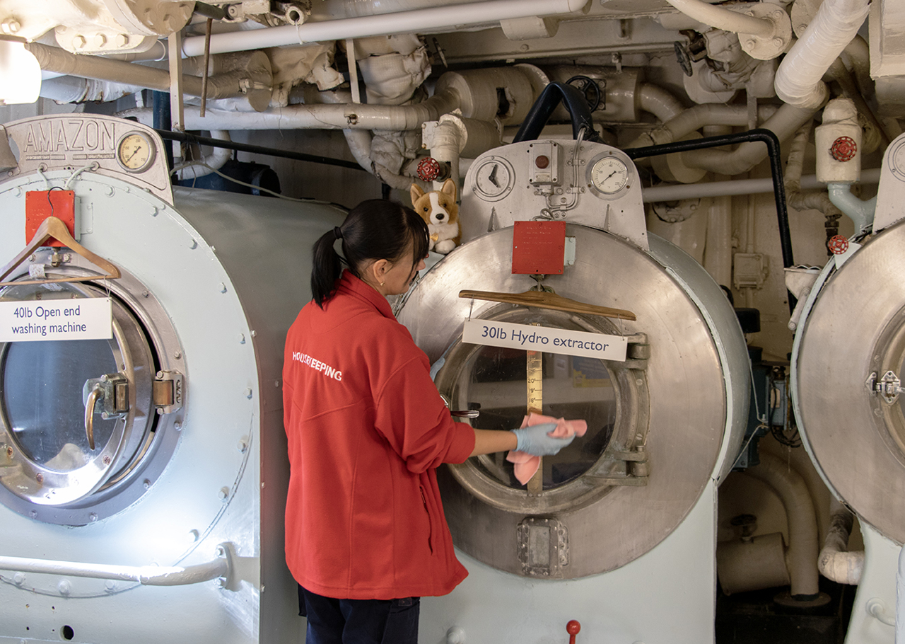 Our Housekeeping Team are committed to ensuring every detail is polished to perfection. Angelina performing a deep clean of the Laundry.