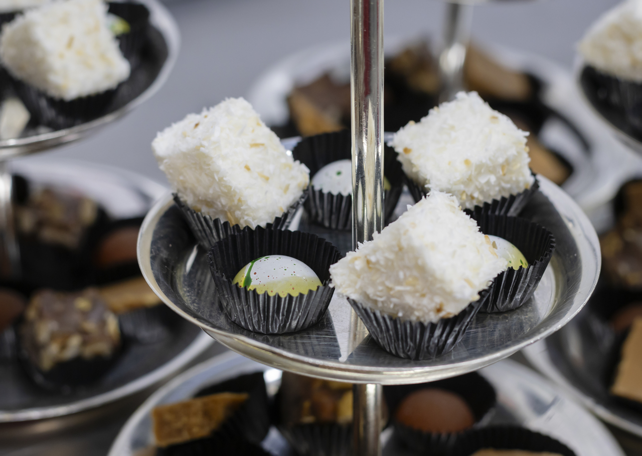 Handcrafted petits fours await guests at an exclusive evening event in Britannia's stunning State Apartments.