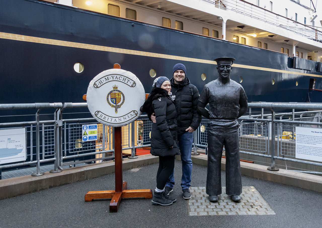 Making memories at The Royal Yacht Britannia's bell, the only place on the Yacht where Britannia's name can be found.