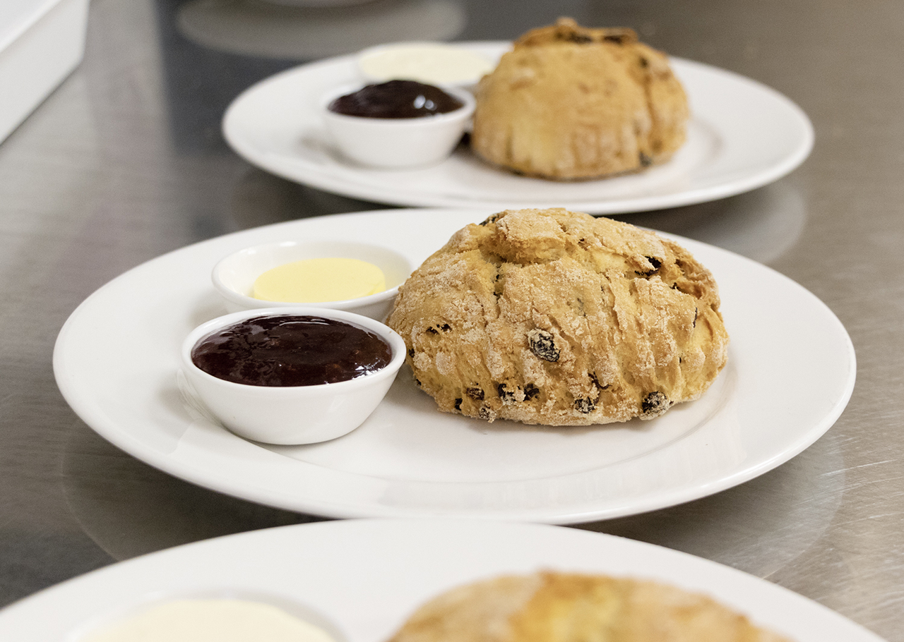 Have you tried a delicious warm scone, covered in clotted cream and jam, freshly prepared in the original Royal Galley?