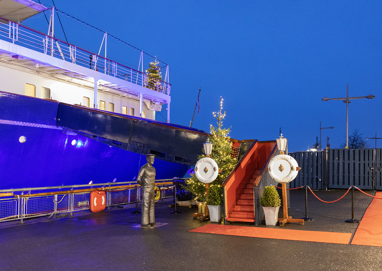 Visitors stand next to the statue of longest serving Royal Yachtsman Ellis 'Norrie' Norrell MVO RVM, a tribute from The Royal Yacht Britannia Trust to the Officers and Royal Yachtsmen who served aboard Britannia.