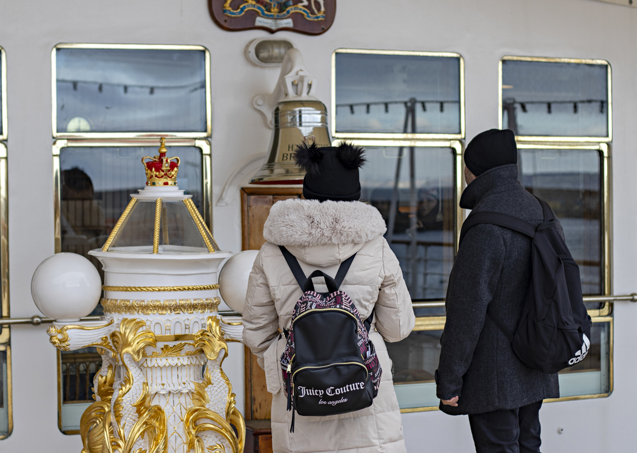 Visitors touring Britannia's State Apartments, where rooms including the State Drawing Room and State Dining Room can be found.