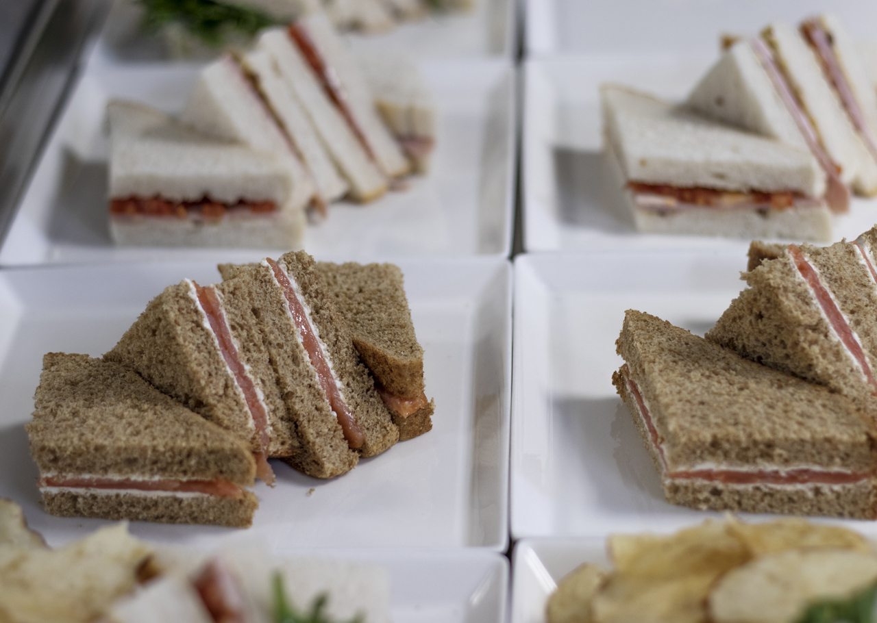 Shetland oak smoked salmon and cracked black pepper cream cheese and Ayrshire honey roasted ham, tomato and wholegrain mustard sandwiches are hearty sandwiches to enjoy in Britannia's Royal Deck Tea Room.