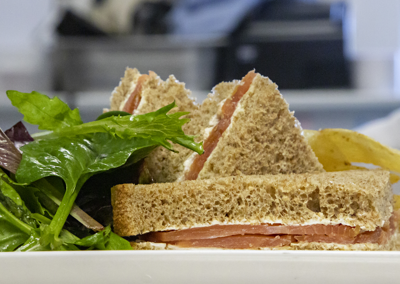 A Shetland oak smoked salmon sandwich is a delicious way to refuel and relax during a tour of Britannia's five decks.
