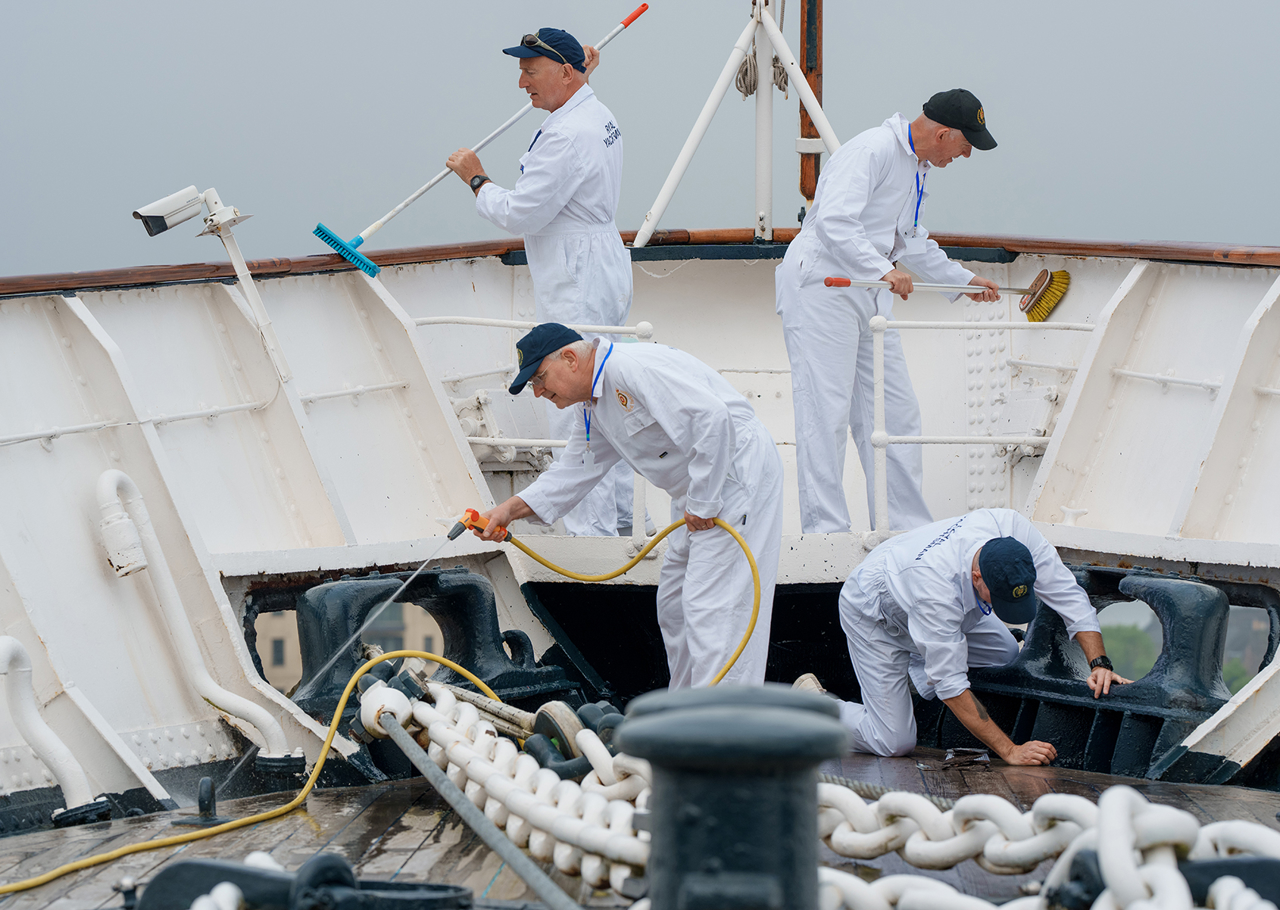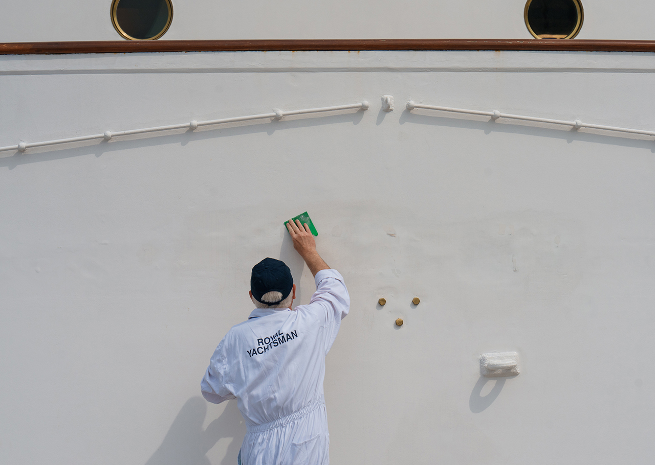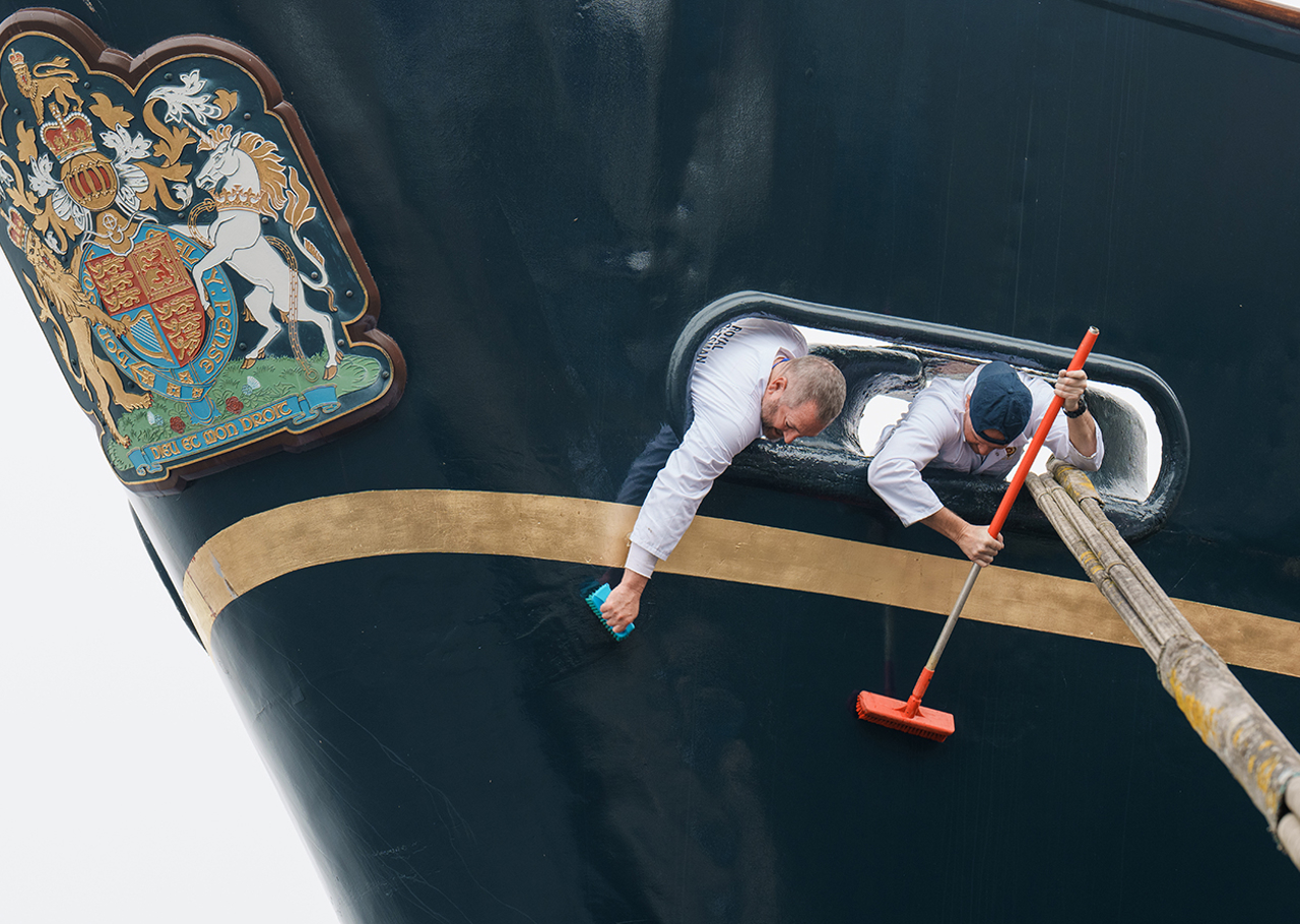 Last week, the annual Yotties' Working Party returned to don their white overalls once again and return to their beloved Britannia. Working alongside our current Maintenance team, they painted, scrubbed, sanded and polished – only to be interrupted by their traditional daily tot of Pusser’s rum!