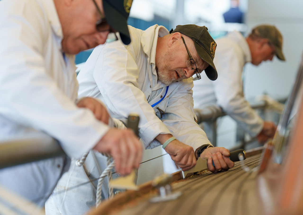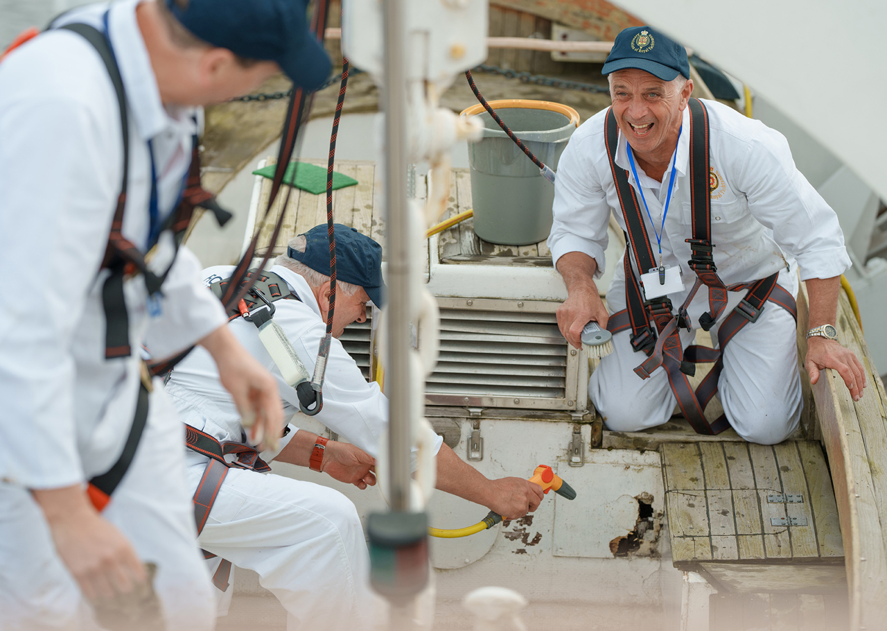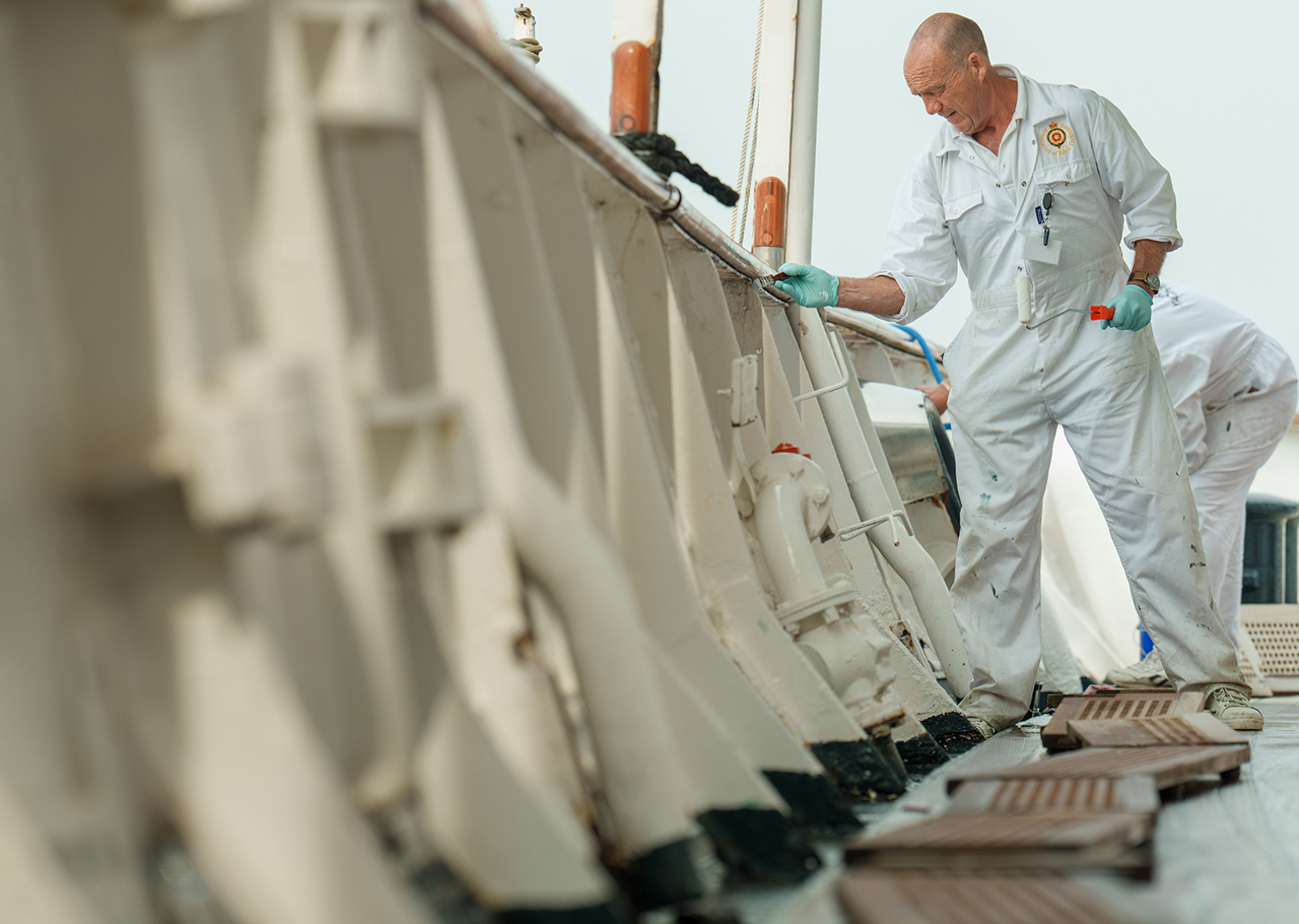 Last week, the annual Yotties' Working Party returned to don their white overalls once again and return to their beloved Britannia. Working alongside our current Maintenance team, they painted, scrubbed, sanded and polished – only to be interrupted by their traditional daily tot of Pusser’s rum!