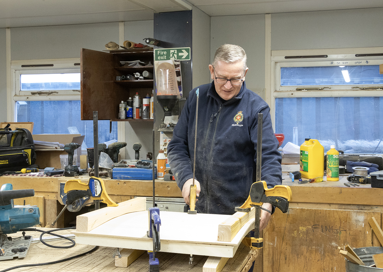Angelina, Housekeeper, tending to the Royal Marines' Barracks. The bandsmen would have to store up to 26 different uniforms to wear for different occasions!