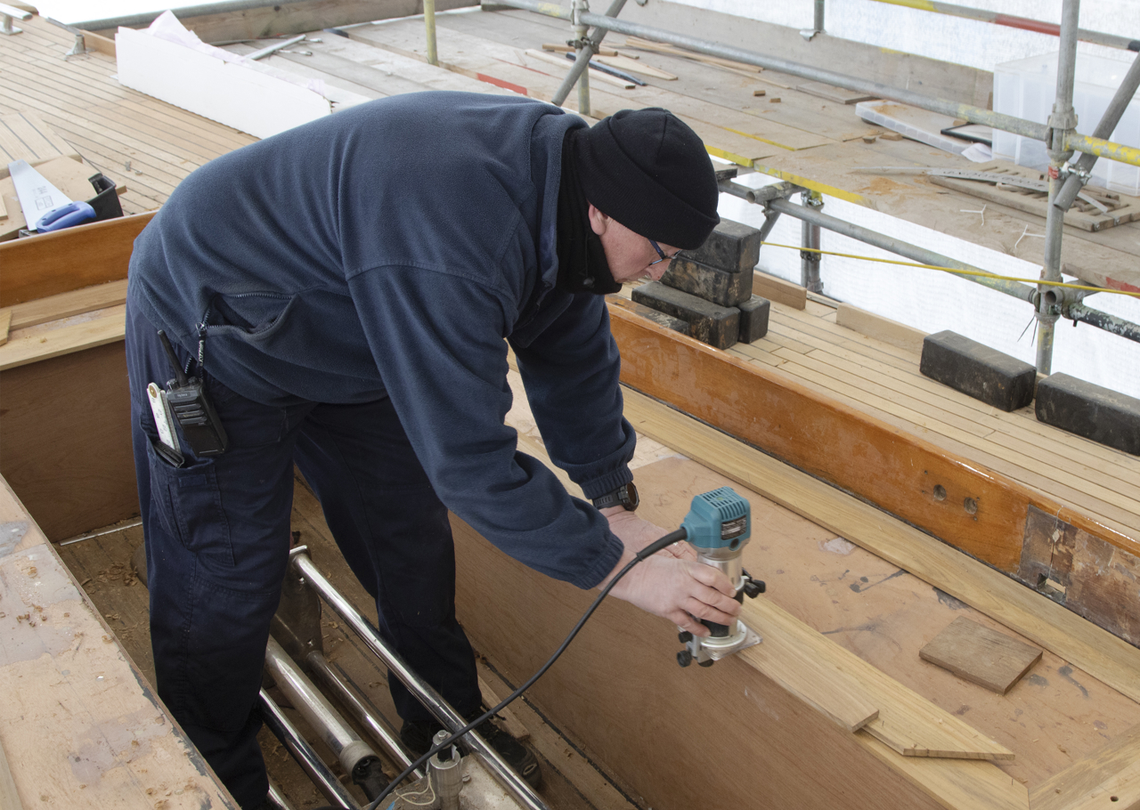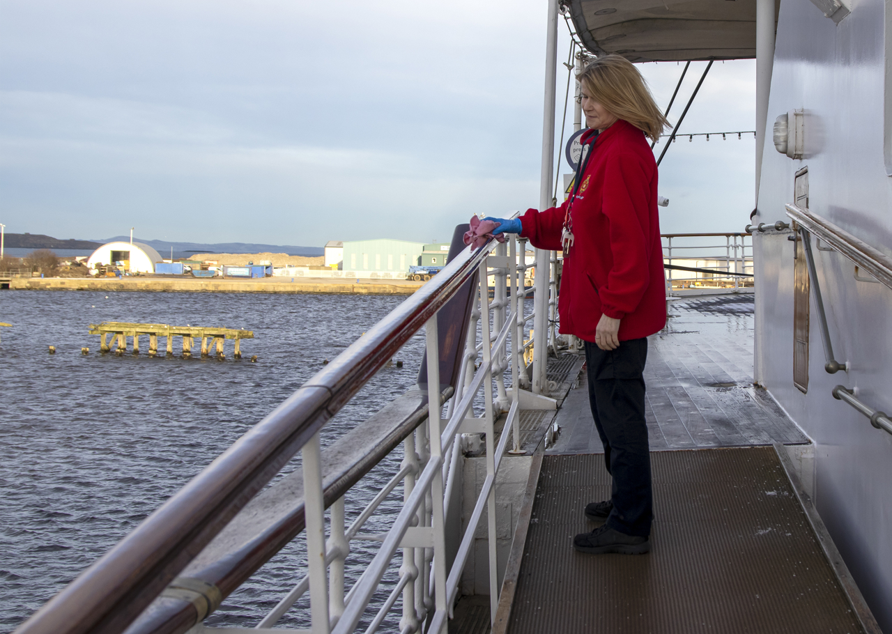 Alex, Visitor Assistant, readying to greet visitors and share stories of Britannia’s unique history.