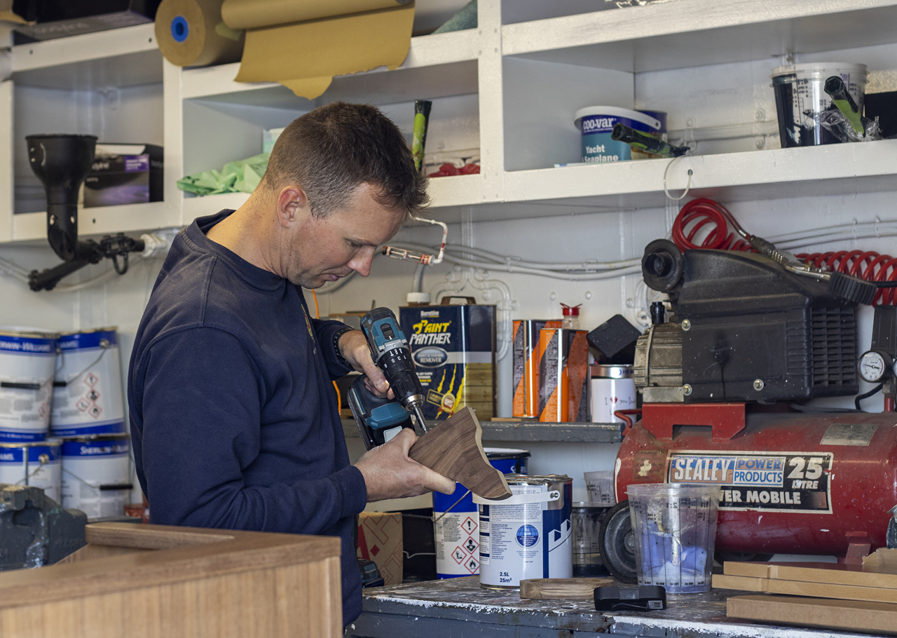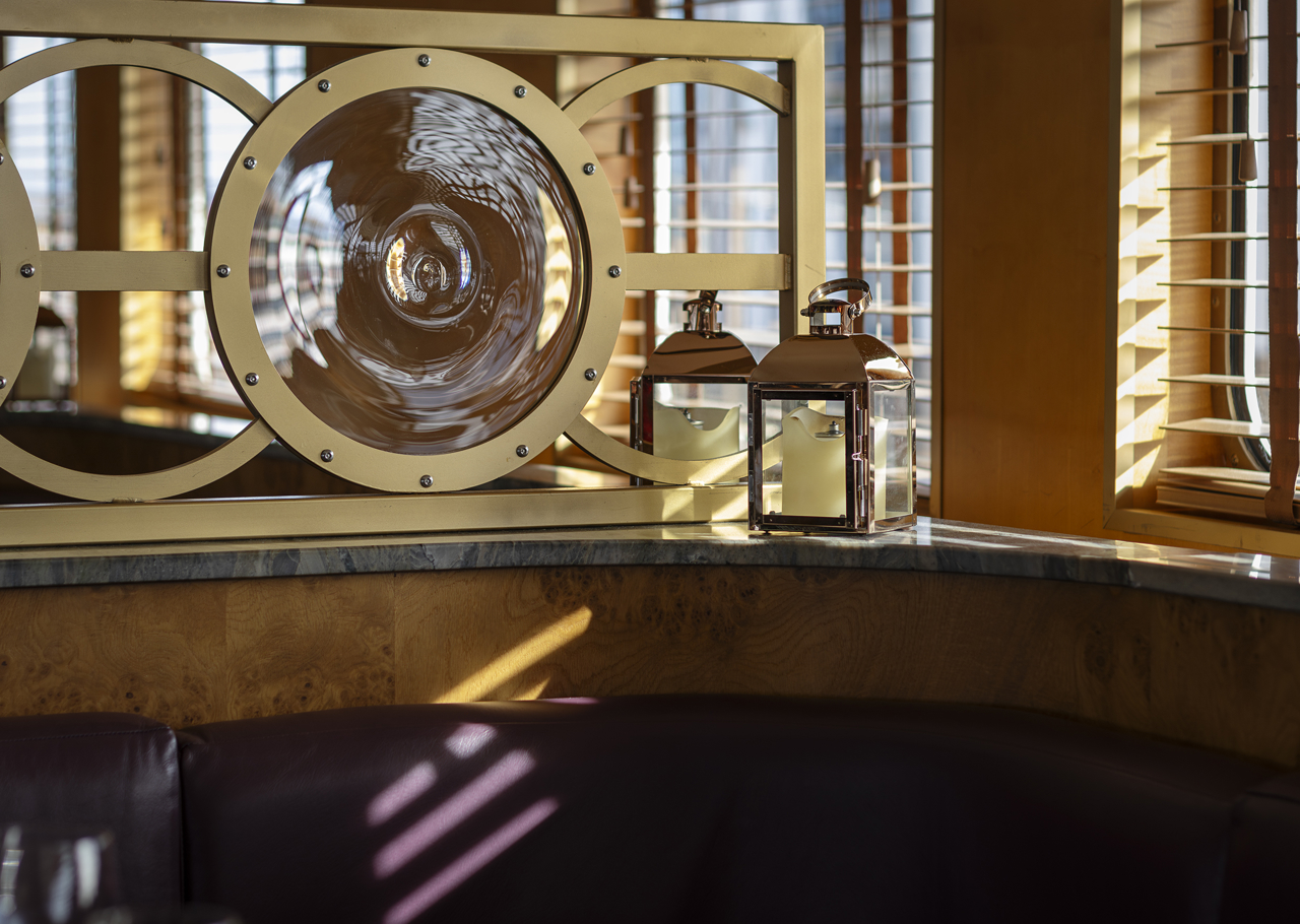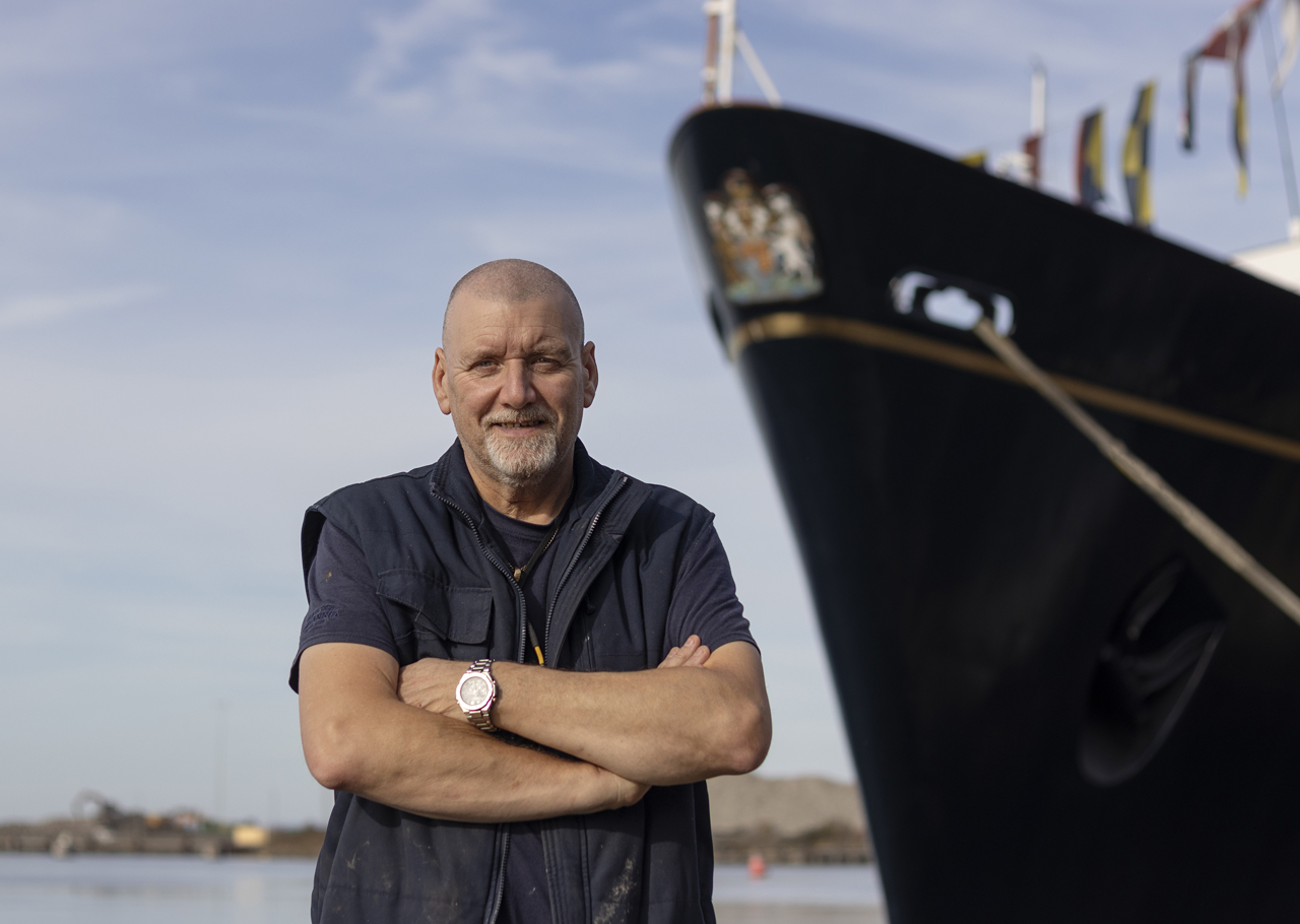 Housekeeper, Lynne, keeping the telescope on the Verandah Deck well polished so that visitors can take in the views across the Firth of Forth.