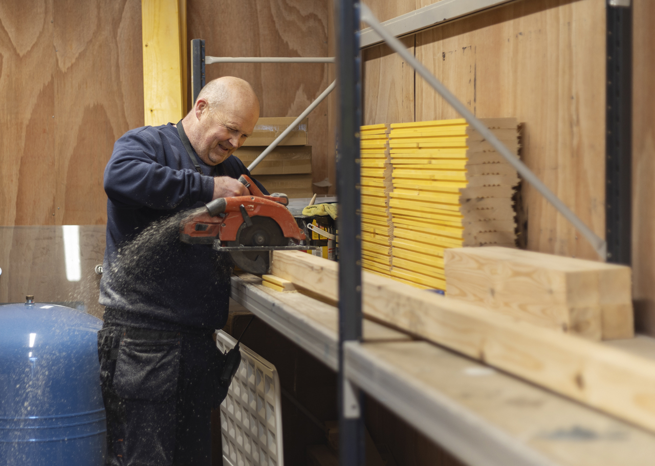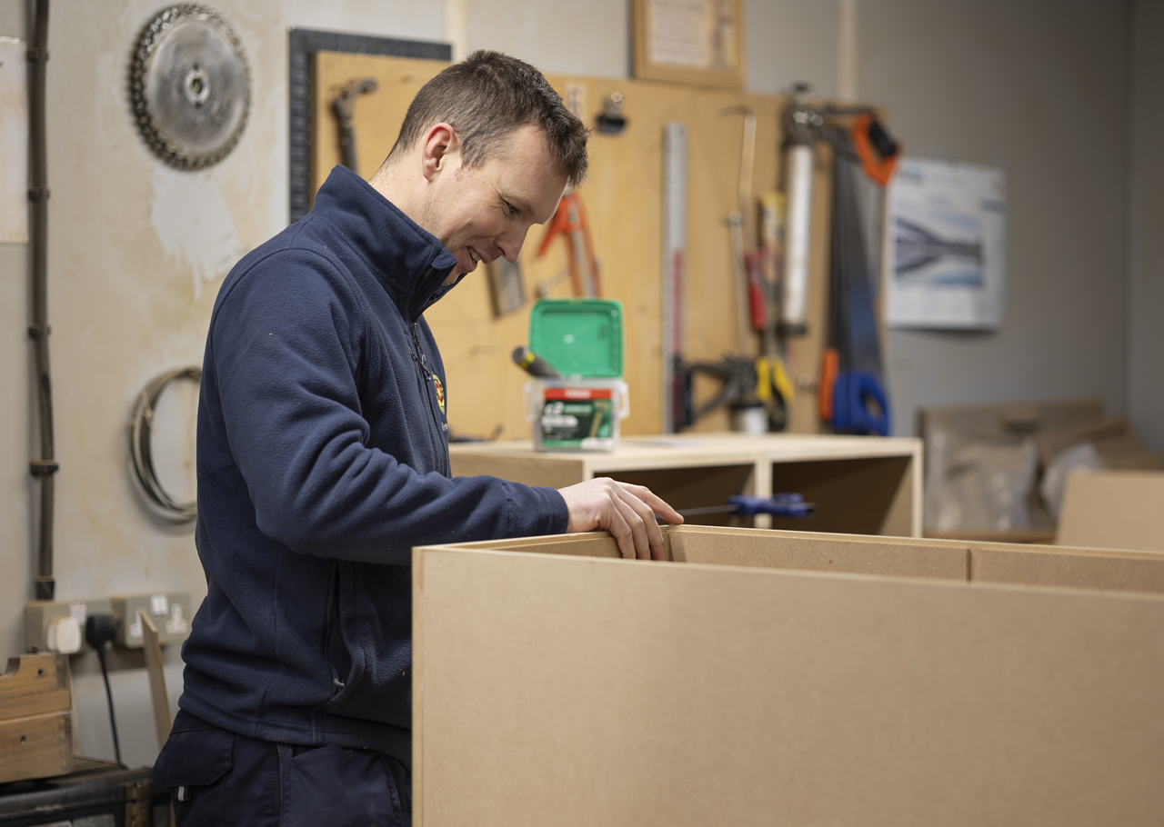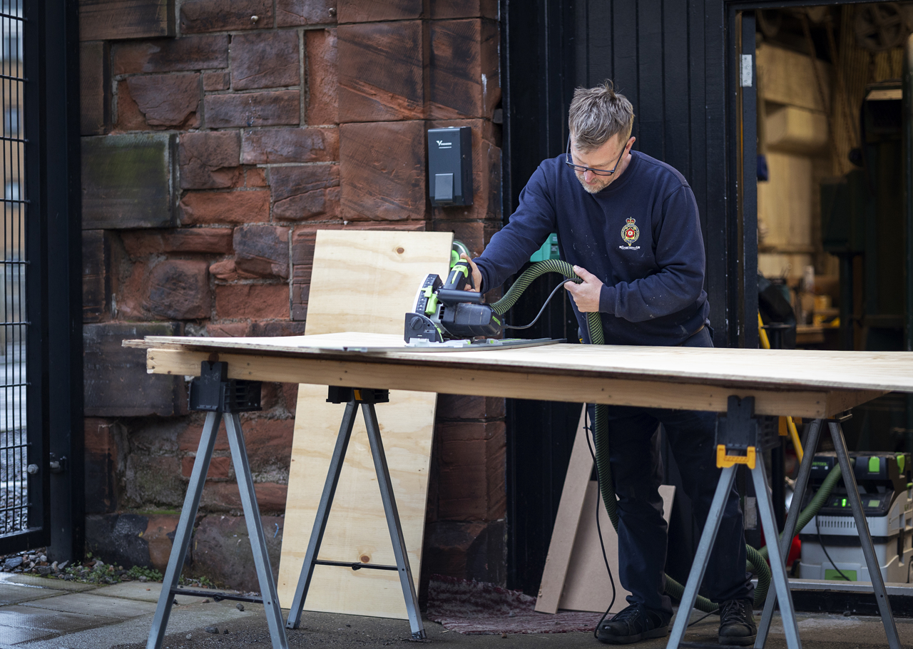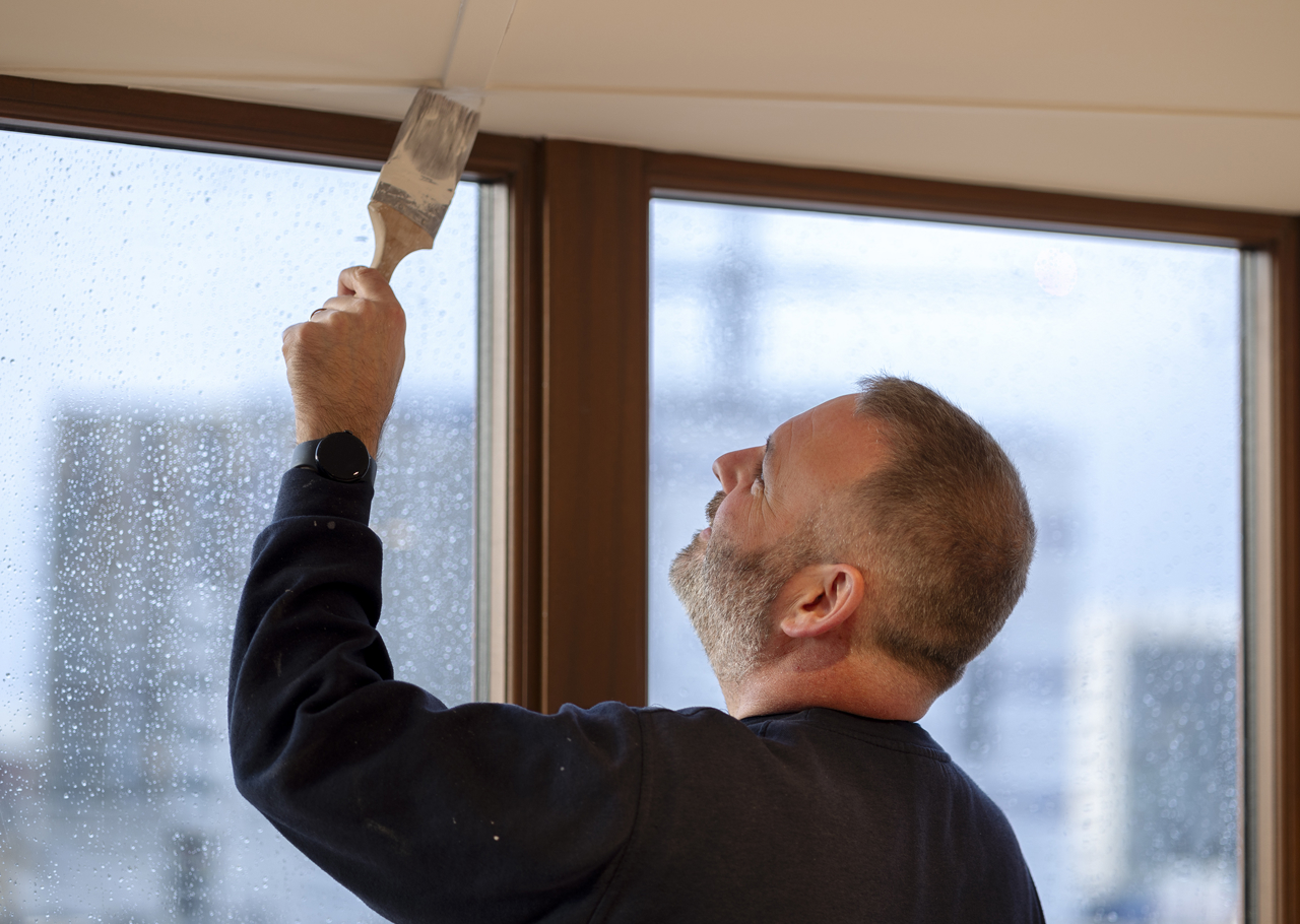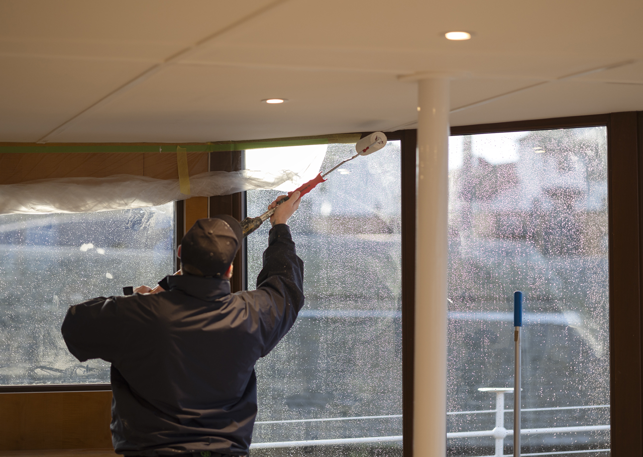 The ceiling of Fingal Hotel's Lighthouse Restaurant & Bar's new extension receiving a fresh coat of paint by Stevie.